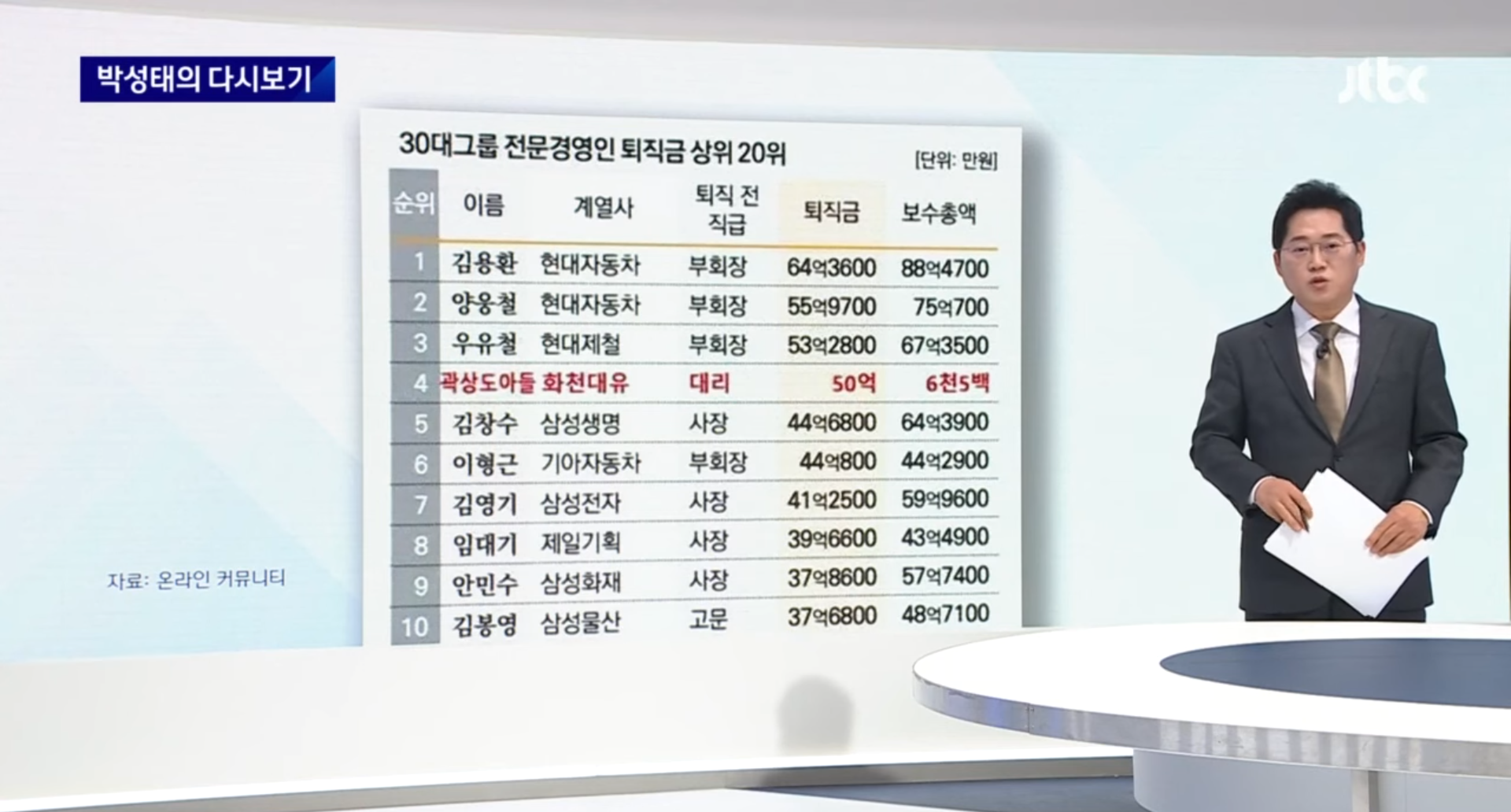 [박성태의 다시보기] 대기업 사장 제치고 '퇴직금 TOP4' 오른 곽 대리 / JTBC 뉴스룸