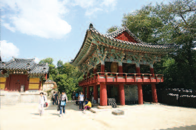 불이문을 들어서서 보면 20여 계단 위쪽에 웅장한 전각이 보인다.