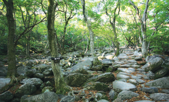 등산 들머리이다. 얼마 안가 왼편에 봄이면 상춘객이, 여름이면 피서객으로 붐비는 넓은 너덜겅이 나온다. 절집을 오른편에 두고 길을 따라 오르면 된다. 절 구경을 한 사람이면 대웅전 앞에서 남쪽으로 담장을 끼고 있는 길을 따라 가면 등산로와 만난다.