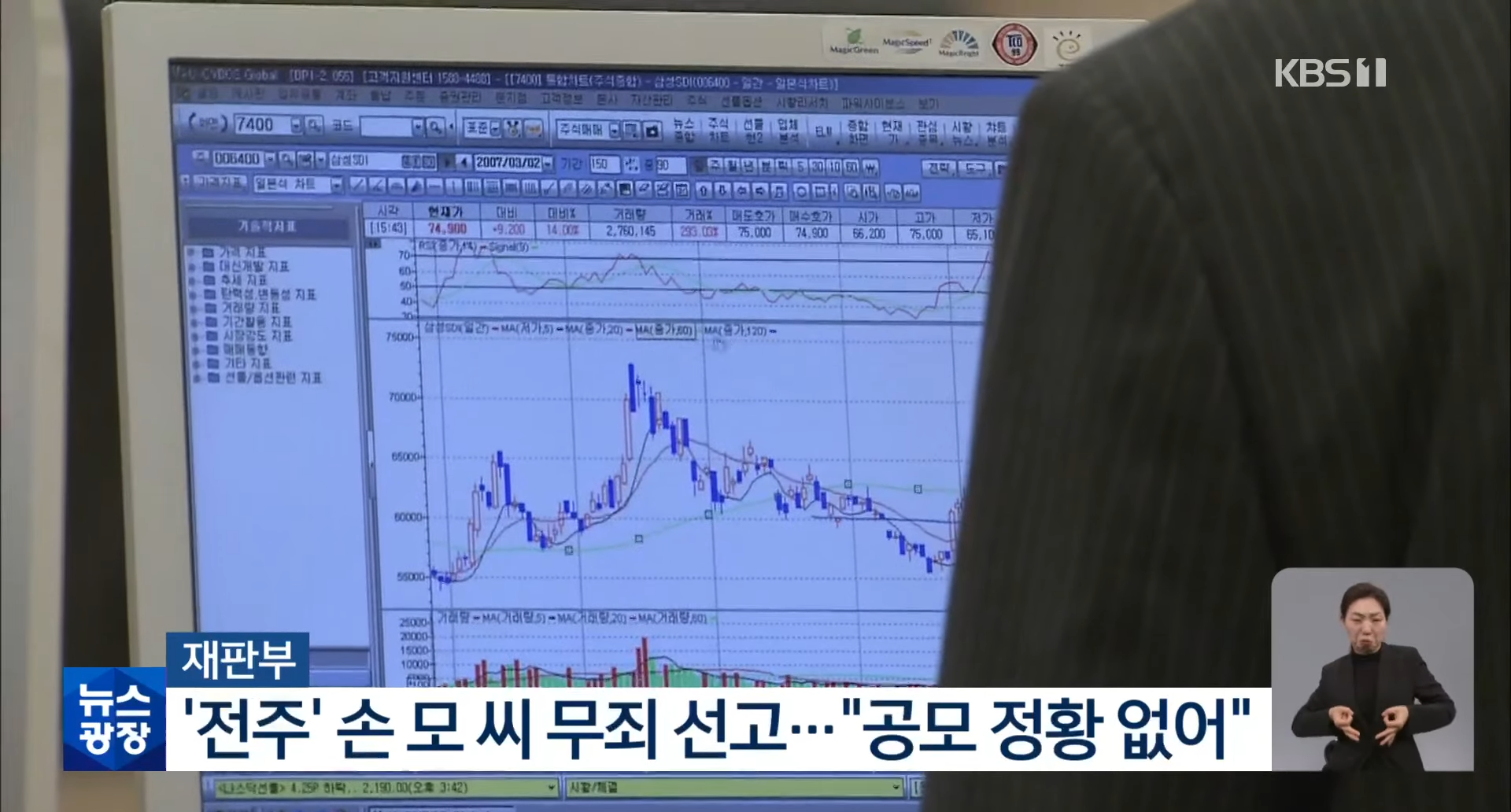 이 사건의 이른바 '전주'로 알려진 손모 씨는 도이치모터스 주식을 70억원어치 넘게 매수해 운용했지만, 재판부는 "손 씨가 선수들과 직접적으로 공모한 정황은 없다"며 무죄를 선고했습니다.