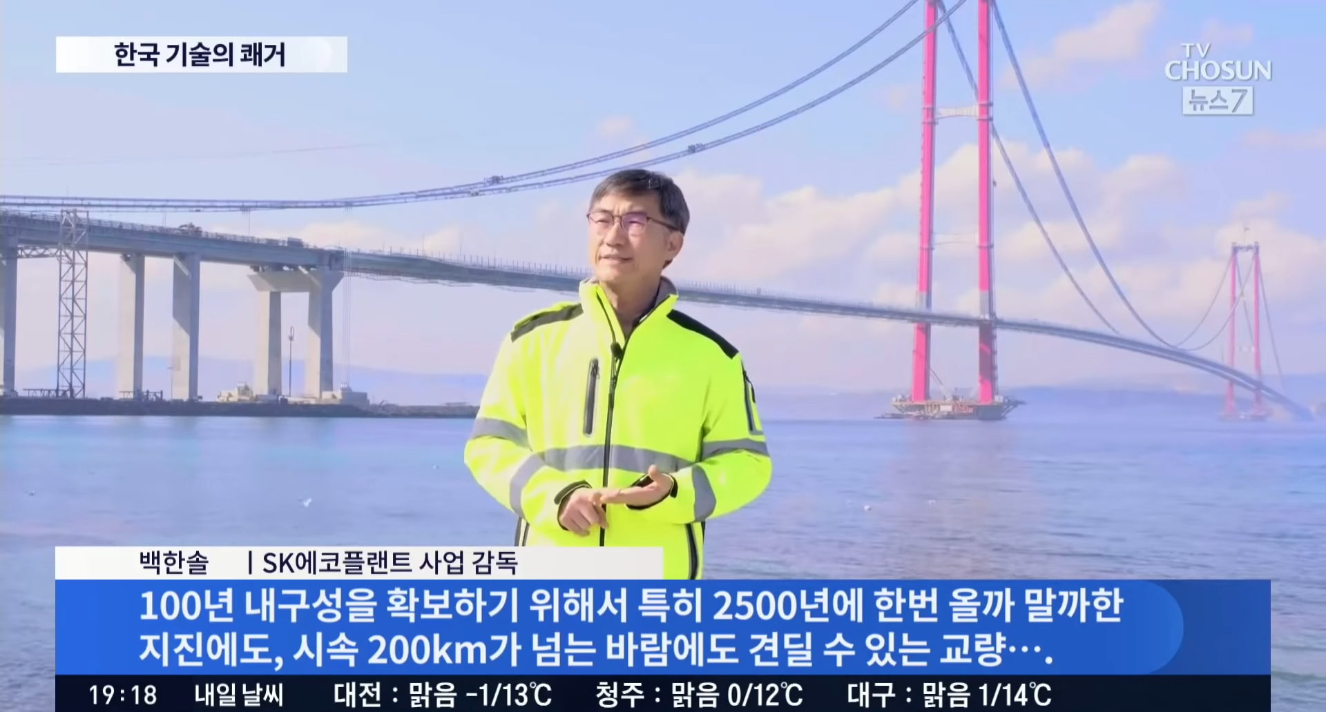 "100년 내구성을 확보하기 위해서 특히 2500년에 한번 올까 말까한 지진에도, 시속 250km가 넘는 바람에도 견딜수 있는 교량...."