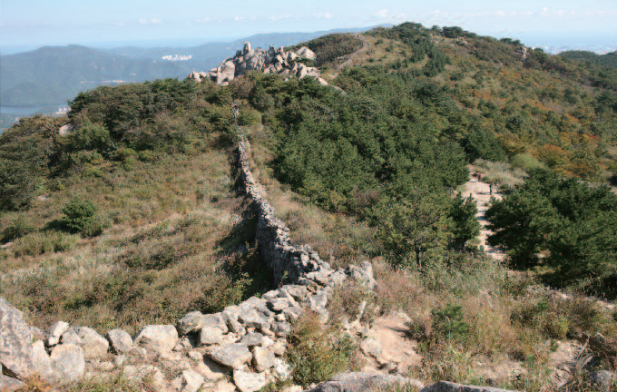 산성과 만나는 봉우리까지 10분의 거리지만 좋은 전망대가 있으면 느긋하게 하계(下界)를 바라보는 것도 등산의 한 재미가 아닐까. 여기서 원효봉까지는 200m를 더 걸어야 한다.