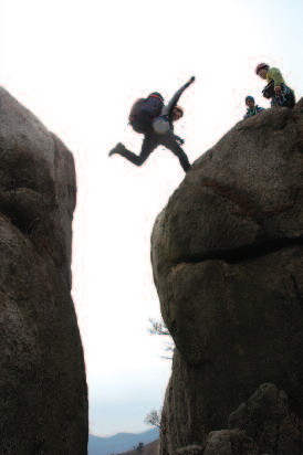 제6피치의 뜀바위는 자신없는 사람은 앞에서 확보상태로 넘어서는 것이 안전하다.