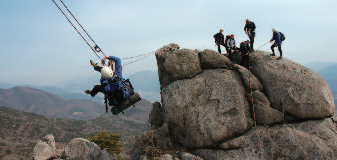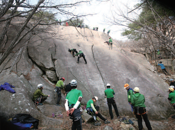 필요한 장비 : 2인 1조의 경우 로프 60m 1동 프렌드 중간사이즈 3개 암각확보용 슬링 퀵드로 5개