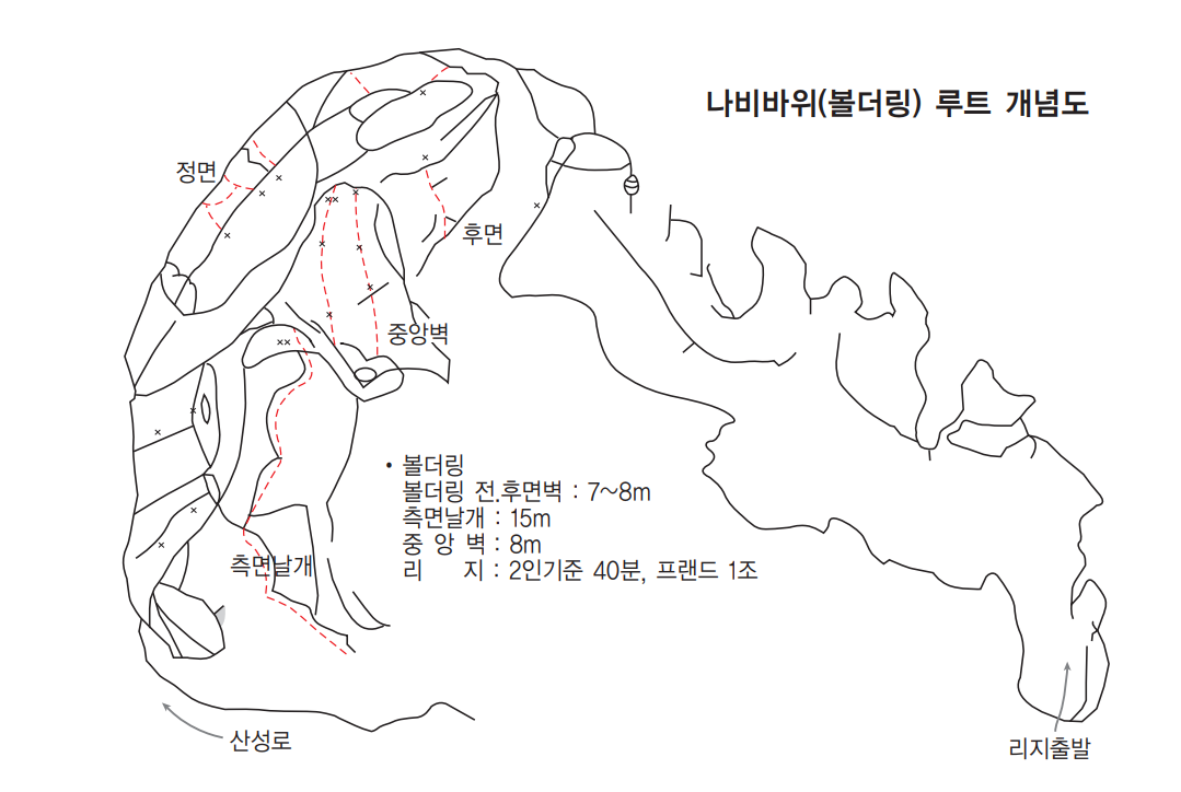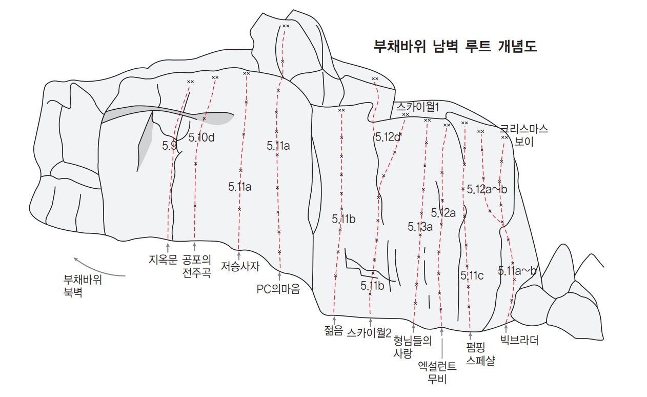 부채바위 남벽 루트개념도