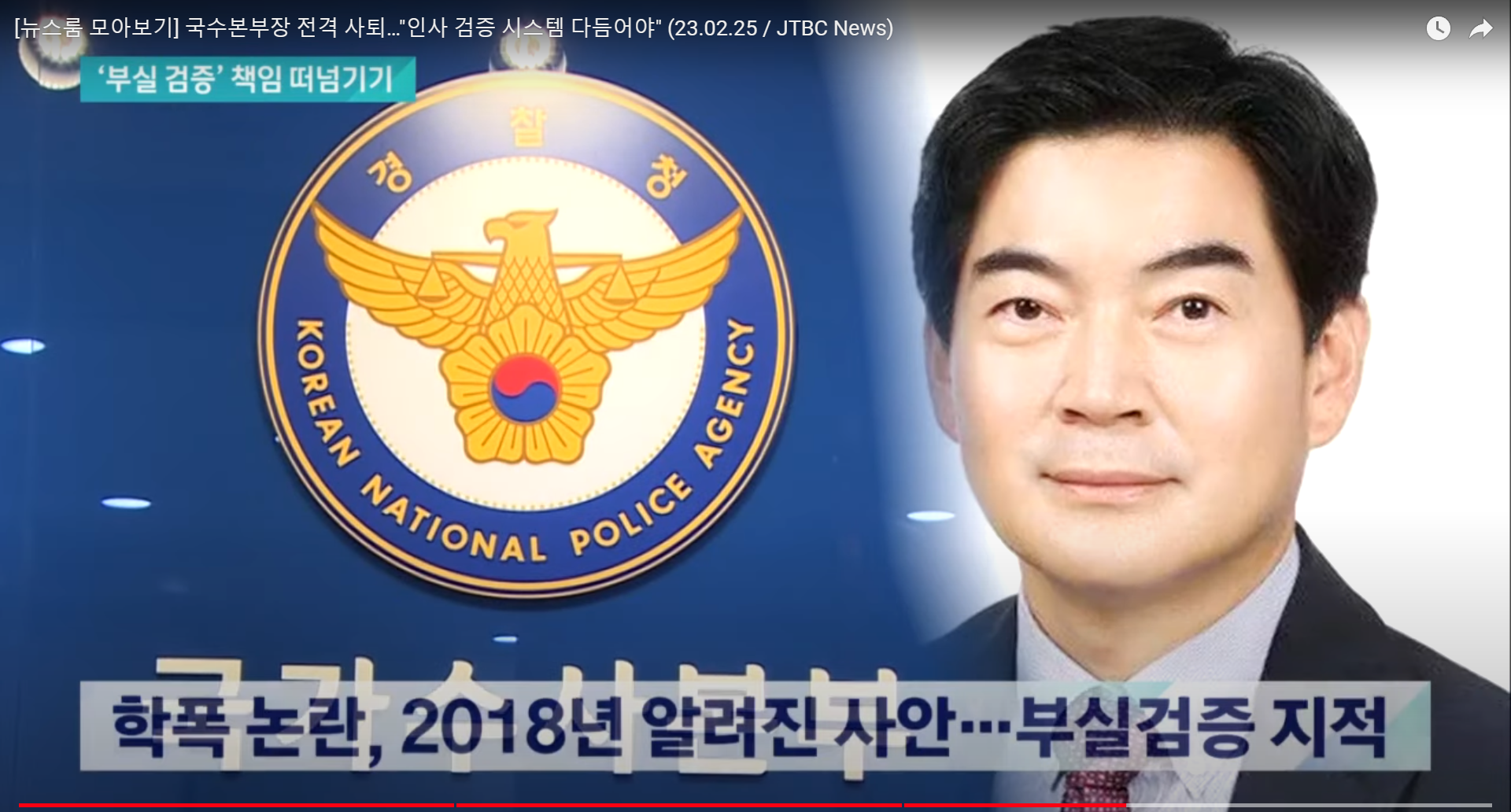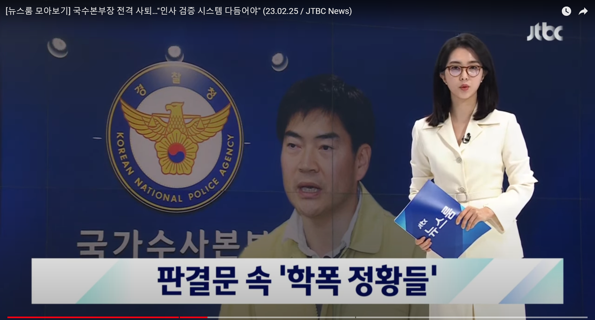 국수본부장 전격 사퇴…"인사 검증 시스템 다듬어야" (23.02.25 / JTBC News)