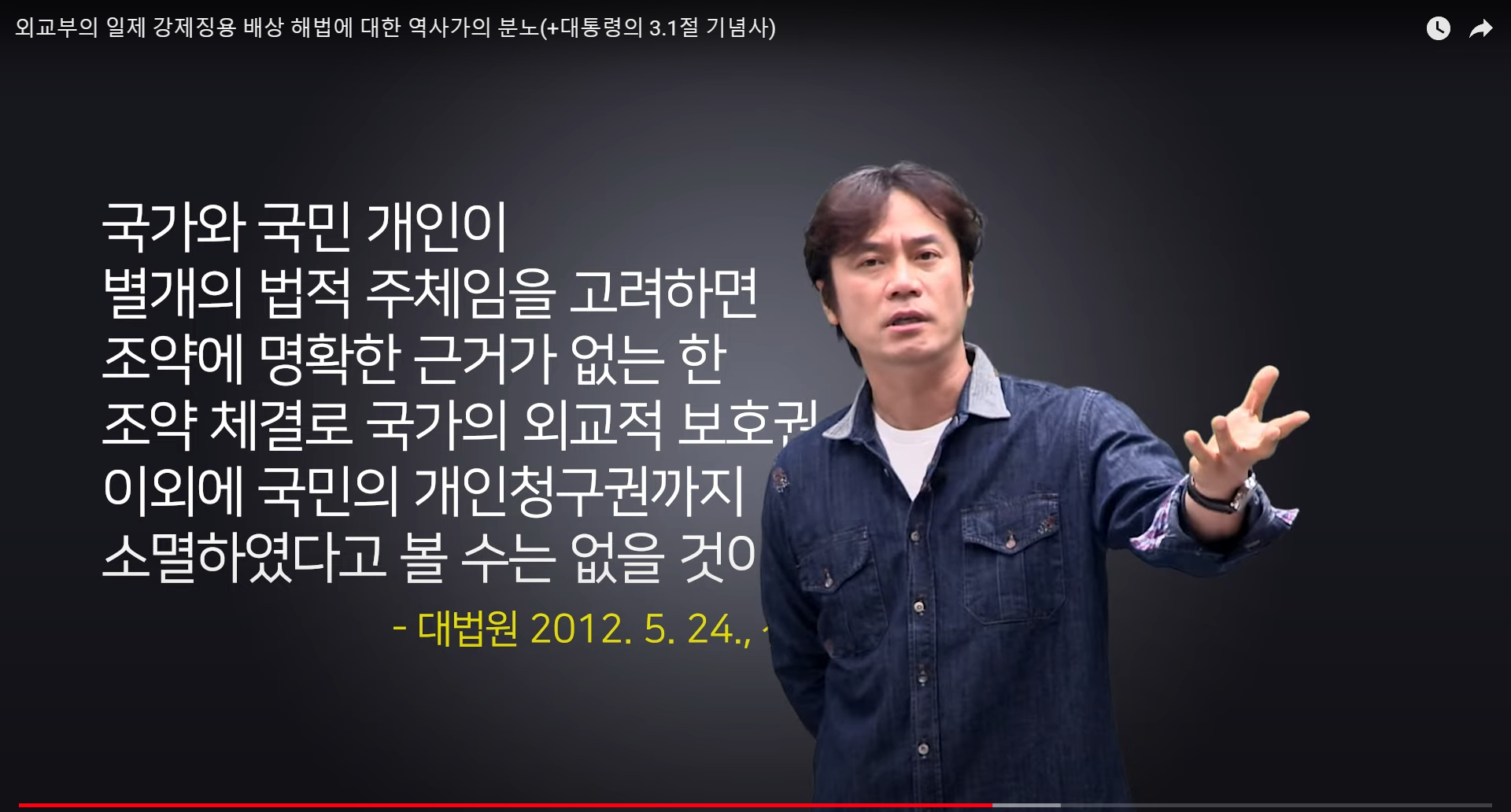 대한민국정부는 이 1965년 이후에는 어느 정권이 들어서든지간에 그 일제강점기 35년 동안에 배상에 대해서 어떤 정권도 일본에게 요구하지 않는다고 사인을 돌려 버린 거죠!
