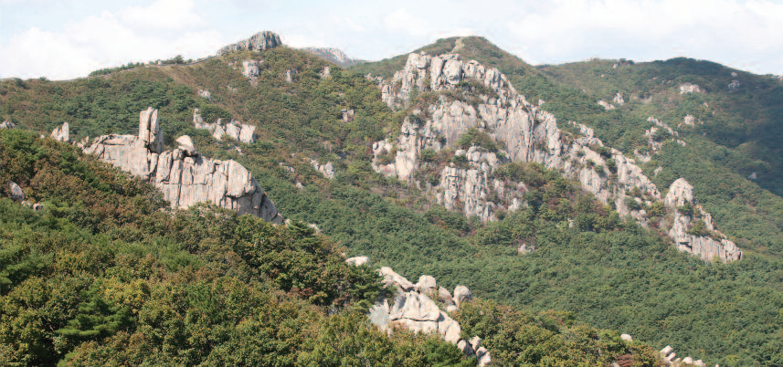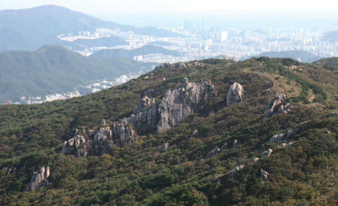 양쪽으로 늘어선 키 큰 산철쭉을 헤치며 능선을 오르다보면 나무사이로 멀리 의상대와 무명암이 보인다. 가까이는 부채바위가 있고 촛대바위로 이어지는 바위능선이 이 코스의 백미(白眉)이다. 겨울이면 황량함이 바위의 무게를 더한다. 그러나 싱그러운 풀내음이 코를 간질이는 어느 봄날 흐드러지게 핀 철쭉꽃 사이로 이들 바위를 보면 어떨까. 그리고 젊은 클라이머들이 바위에 붙어사는 늦봄부터 가을까지는 이들 바위 부근에만 가도 바위의 거친 숨결과 고동치는 맥박을 느낄수 있지 않을까.