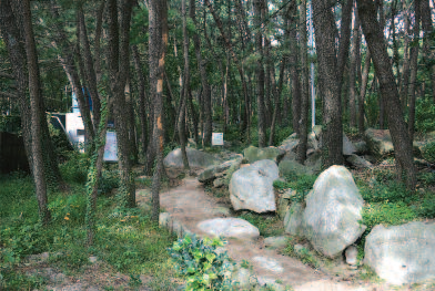 갈림길에서 산으로 20여m 들어가 사방을 둘러보면 바로 등산로와 만나게 된다. 왼쪽으로 방향을 바꿔 계곡쪽으로 난 길로 가면 잘 관리된 묘지 1기를 지나 곧 갈림길을 만난다.