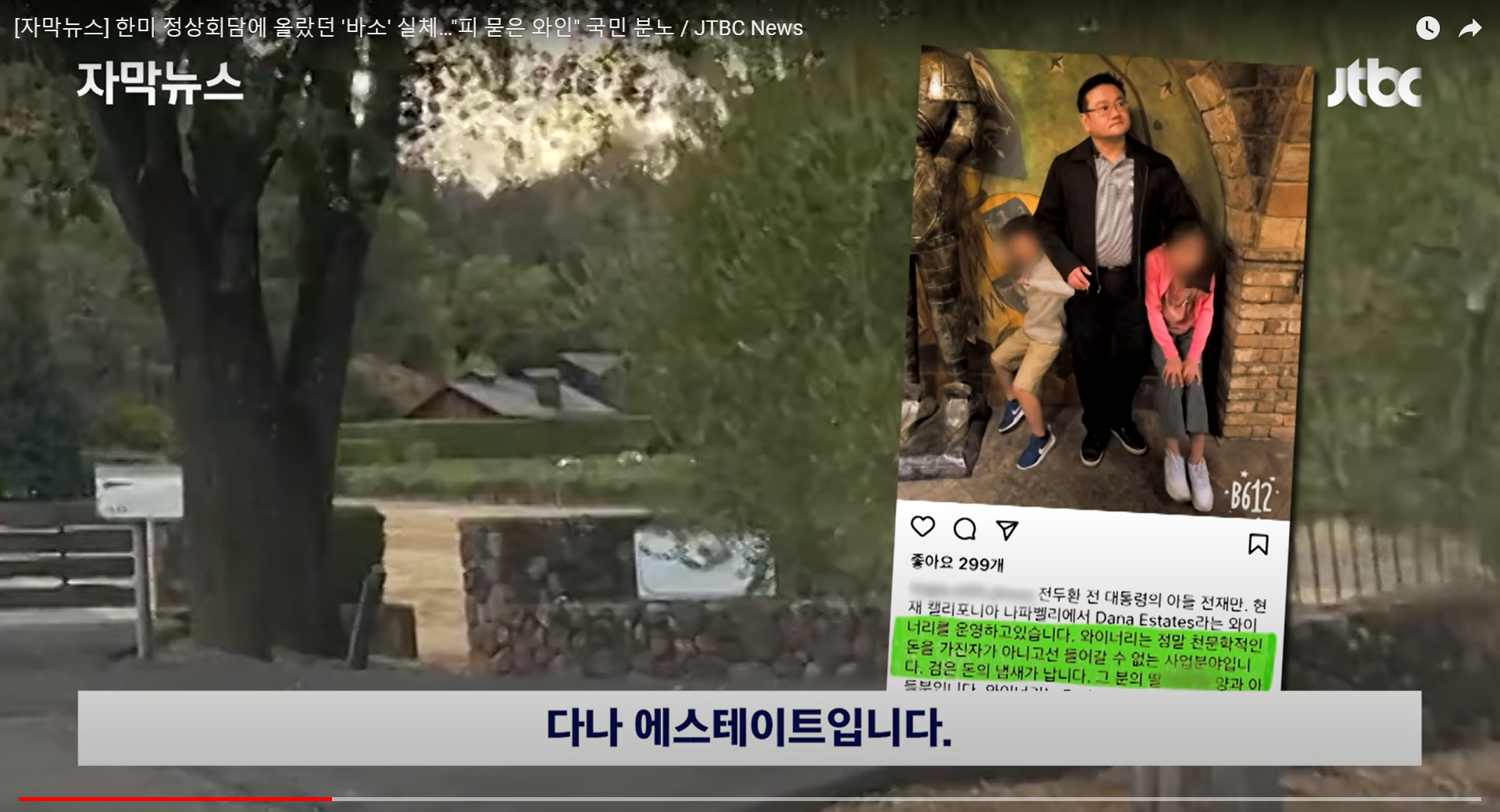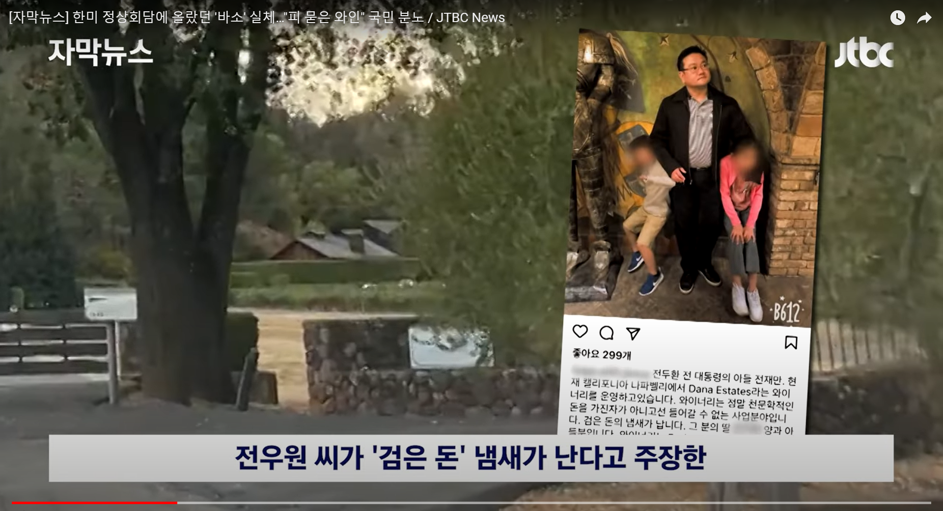 전두환 씨의 셋째 아들 전재만 씨의 미국의 대규모 와인 양조장에 대한 의혹도 제기했습니다. '검은 돈'의 냄새가 난다고 했습니다. 전두환 일가의 은닉자금을 취재해 온 JTBC가 이 와이너리를 여러차례 방문했었는데, 간판도 없고 늘 문은 굳게 닫혀 있었습니다.