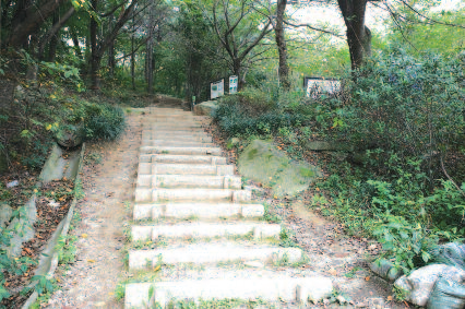 우성아파트를 가운데 두고 남북 양쪽에서 붙을 수 있는 두 등산로 가운데 남쪽코스다.
