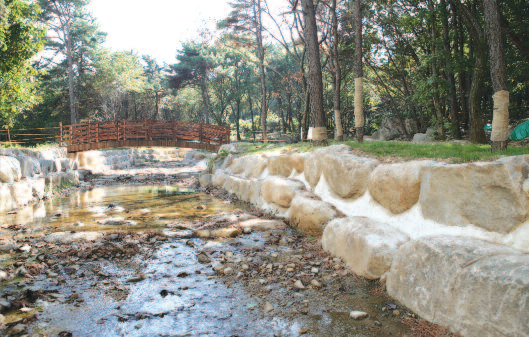 하산하는 사람에게는 자칫하면 놓치기 쉬워 크게 도움이 될것 같지 않다. 바위 사이를 이리저리 돌면서 7~8분 오르면 왼쪽 계곡 건너 정암 약수터 체육공원이 보인다.