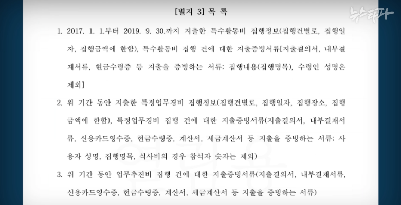 검찰 조직이 생긴 이후, 특수활동비 지출 증빙자료가 검찰 청사 밖으로 나온 최초의 순간이었다. 1심 재판 때는 이 자료를 제출하지 않고 버텼다.