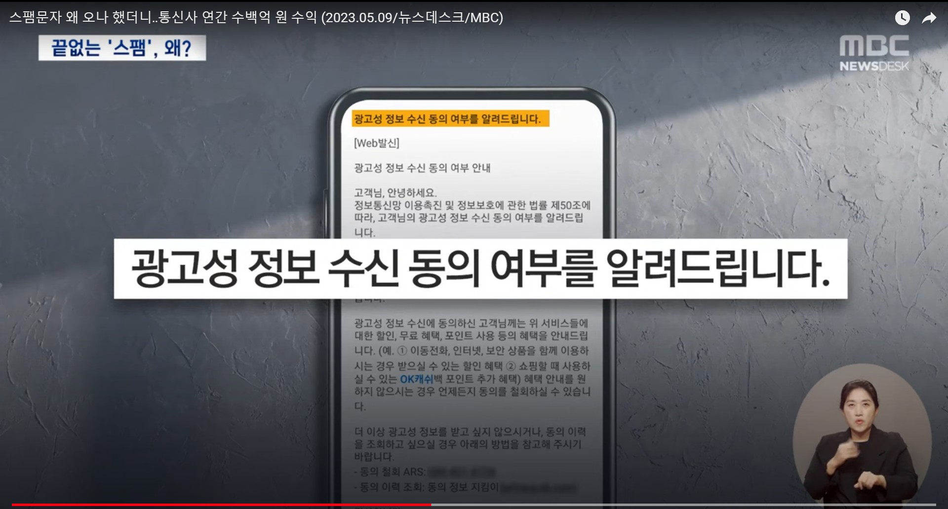 스팸문자 왜 오나 했더니‥통신사 연간 수백억 원 수익 (2023.05.09/뉴스데스크/MBC)