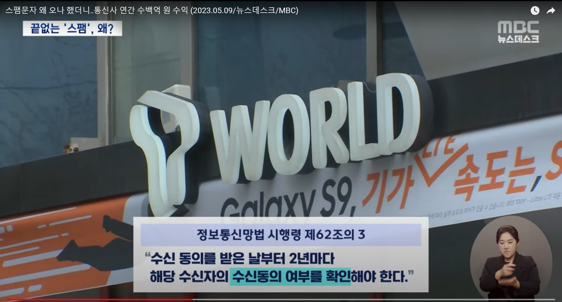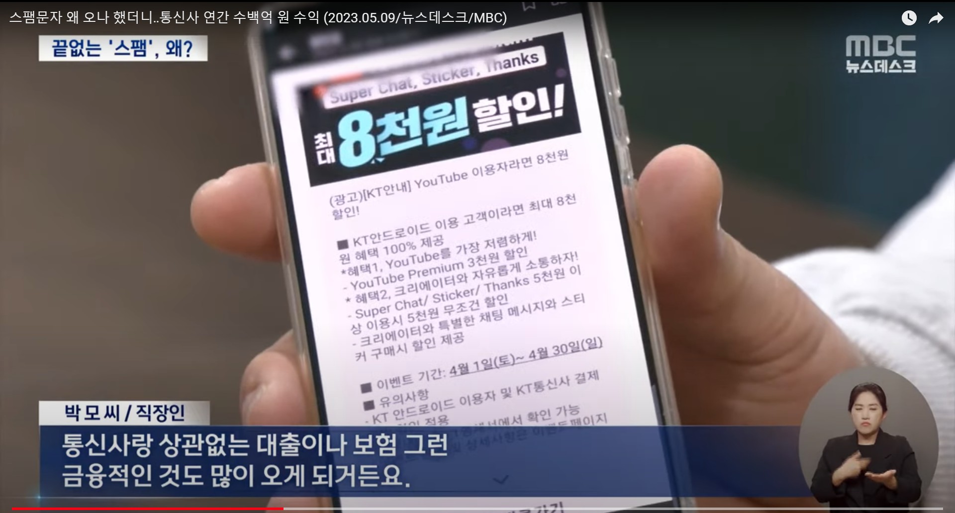 스팸문자 왜 오나 했더니‥통신사 연간 수백억 원 수익 (2023.05.09/뉴스데스크/MBC)