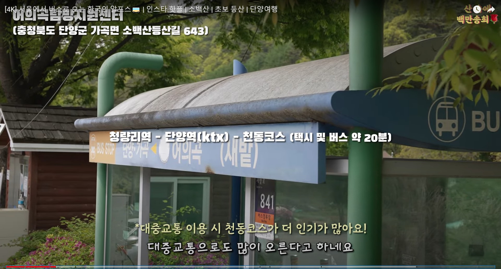 서울 청량리역 ~ 단양역 ~ 천동코스 대중교통으로도 인기 !