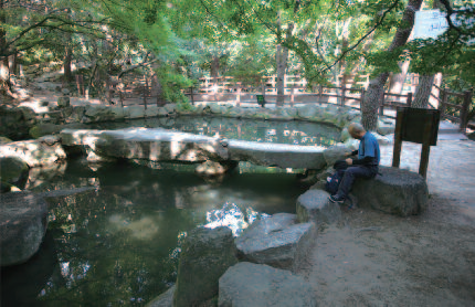 도시철도 1호선 온천장역 1번 출구로 나와 금강공원 입구를 거쳐 연못까지 가는 데는 25분의 거리다. 연못을 지나 가파른 계단 따라 10분 올라 왼편 계곡을 건넌다.