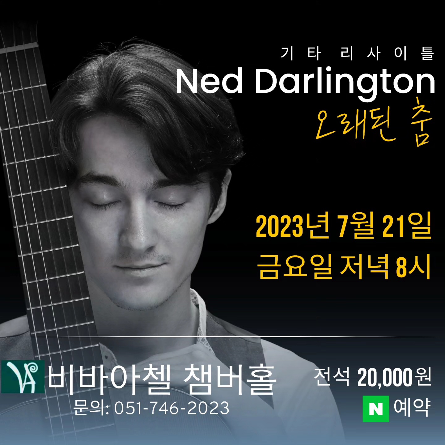 기타 리사이틀 Ned Darlington 오래된 춤 2023년 7월 21일 금요일 저녁 8시 입금 시 20,000원/ 카드결제시 부가세10% 포함 22,000원입니다.