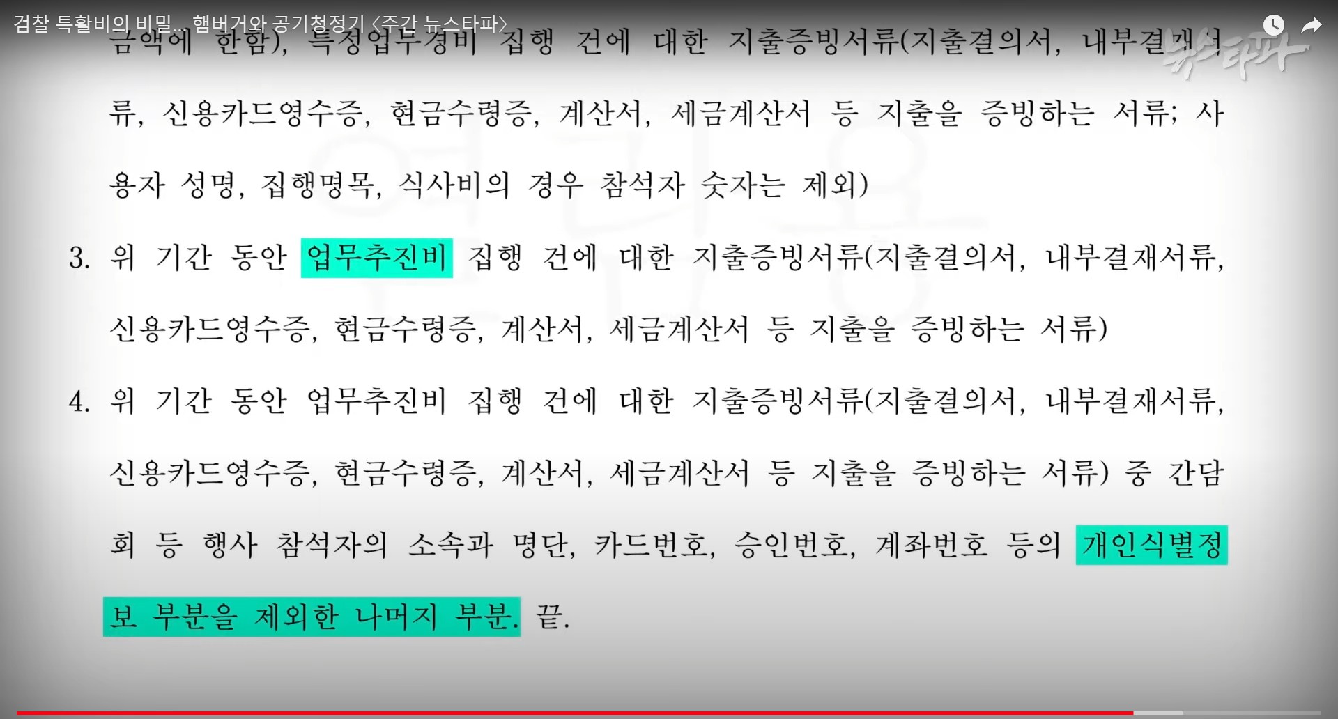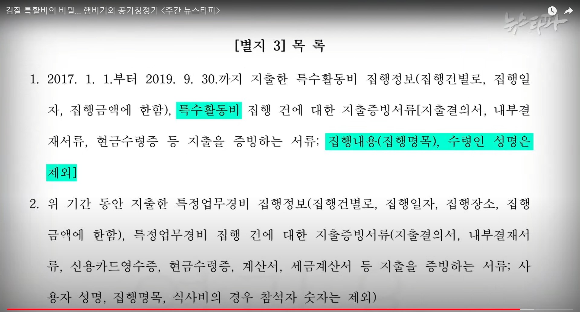 검찰조직 특수활동비, 업무추진비, 특정업무경비 불법 사용내역 오늘부터 공개합니다.
