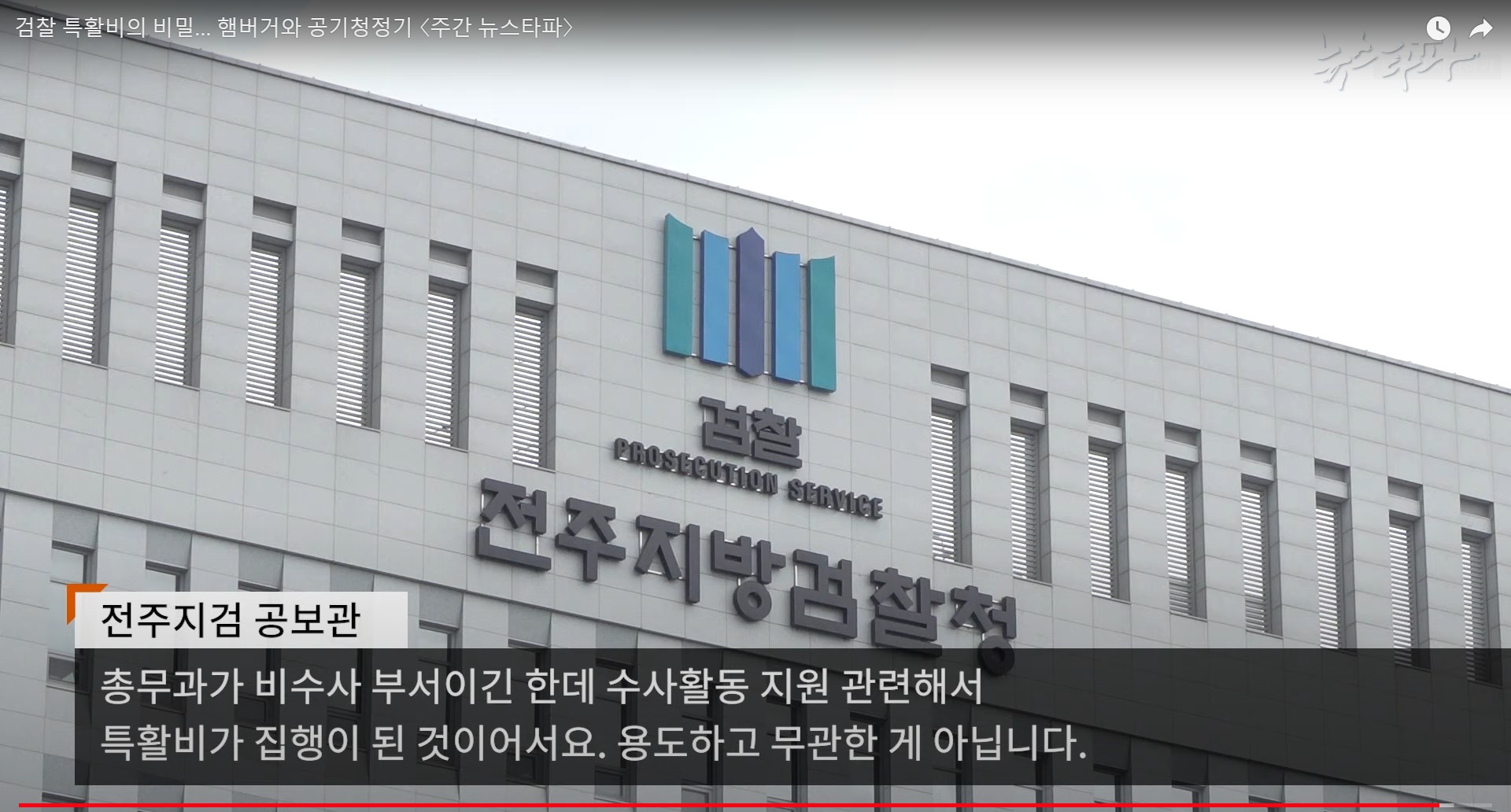 전남 장흥지청의 경우 기밀 수사에 써야 할 검찰 특수활동비(특활비)를 검사실 공기청정기 렌탈비와 검찰 간부들의 기념 사진 비용으로 지출한 것으로 확인됐습니다. 장흥지청은 공기청정기 렌탈비라도 검사실에서 사용한 것이기 때문에 특활비의 사용 목적에 어긋나지 않는다는 황당한 입장을 밝혔습니다. '기밀수사에 사용하기 때문에 집행 내역을 공개할 수 없지만, 잘 관리되고 있다'는 검찰의 주장이 결국 거짓말로 드러난 것입니다.