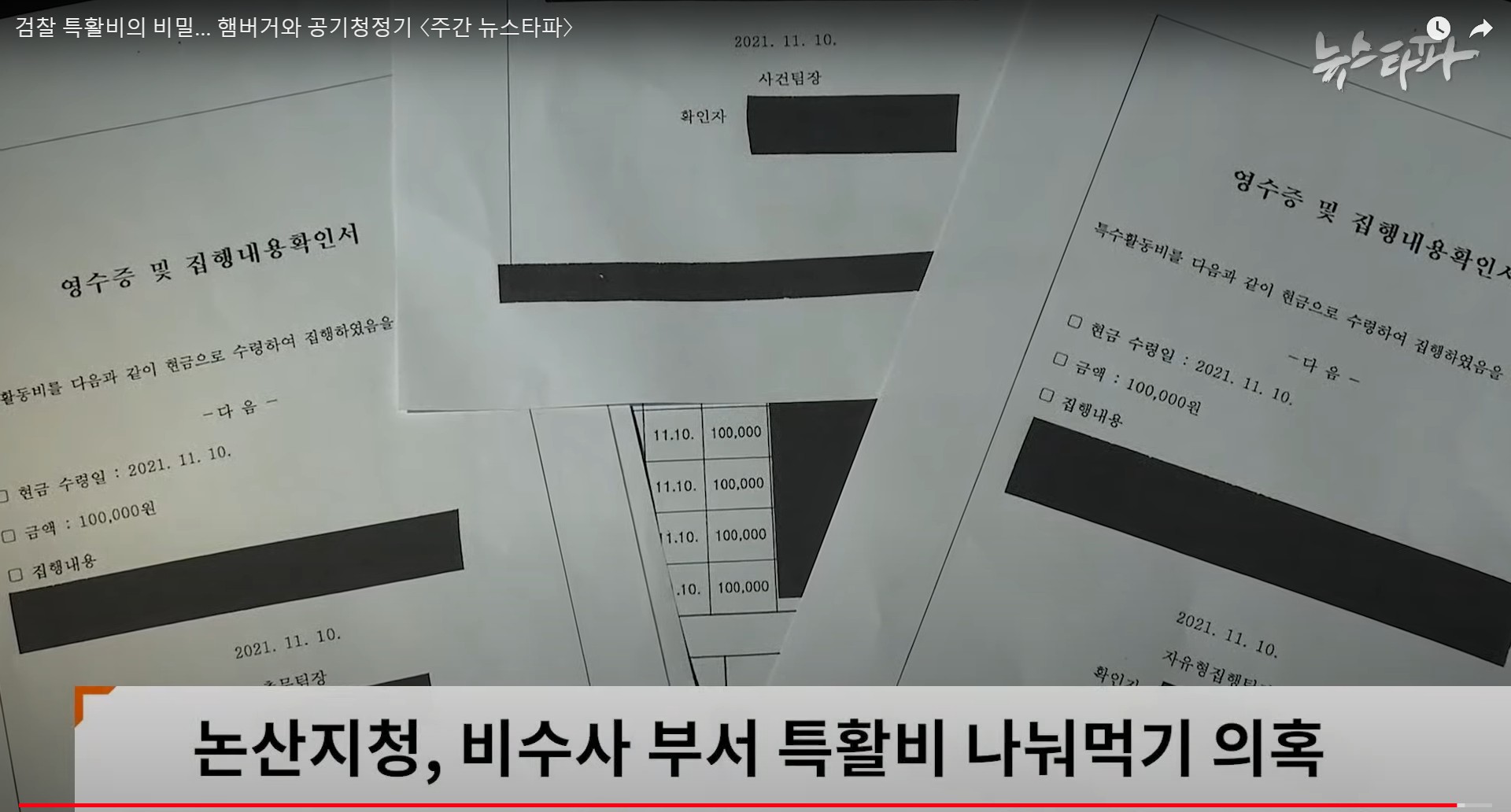 검찰 특수활동비가 검찰청 총무과 등 수사를 하지 않는 부서에도 무더기 지급된 것으로 드러났습니다. 기밀 수사를 직접 하지 않는 부서에 특활비가 지급됐다는 사실이 확인됨에 따라, 세금 오남용은 물론 비수사부서를 포함해 검찰청 내 부서별로 특활비를 나눠 쓰는 게 아니냐는 의혹까지 제기됩니다. 지난 2017년 '특활비 돈봉투 만찬 사건' 당시, 검찰은 비수사부서에 있는 검사들에게 특활비를 지급한 것은 위법하다며 스스로 기소한 바 있습니다.
