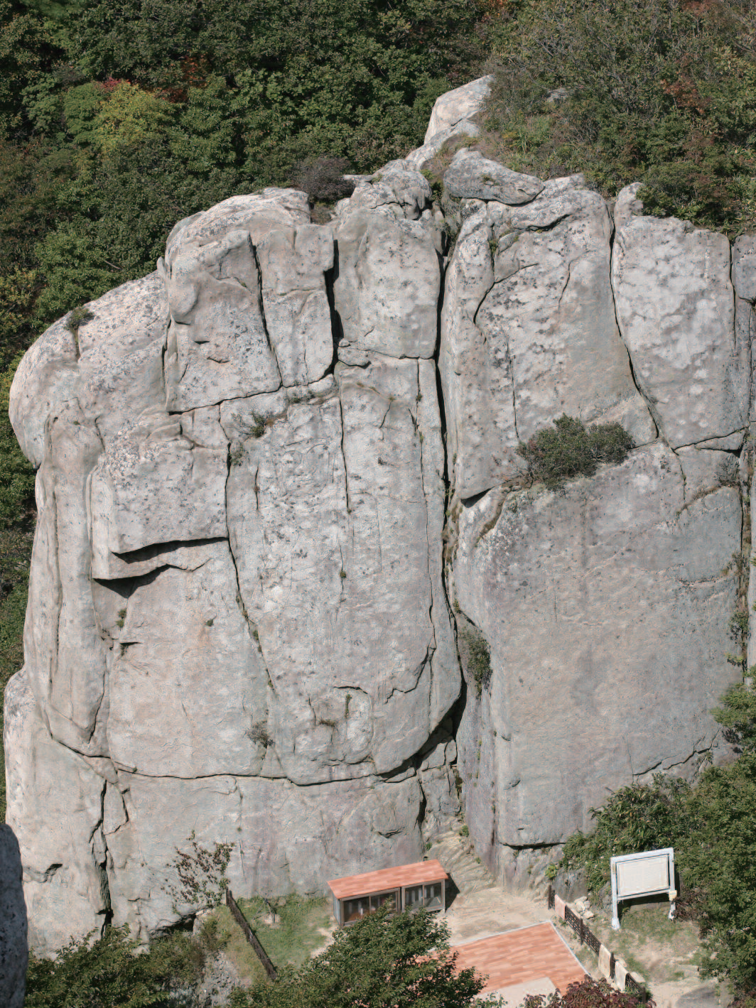 좌. 금곡 갈림길 쉼터.  우. 미륵봉 정상부 하트 모양 괴석.