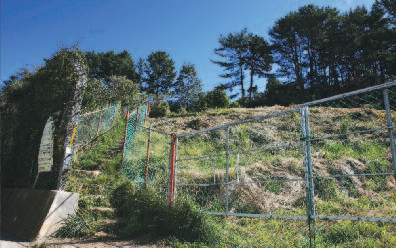 물탱크 옆을 지나 오른쪽으로 돌아 오르면 큰 소나무 여러 그루가 있는 쪽으로 묘를 사이에 둔 갈림길과 만난다. 왼쪽 길로 접어들면 바로 대나무 숲속으로 길이 이어진다. 길게 느껴지는 대숲에 이어 잡목지대를 지나면서 급경사로 변한다. 6~7분 오르면 고압송전철탑을 만난다.