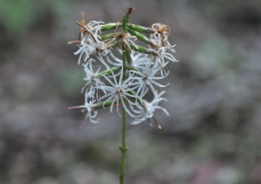 는 흰꽃이 층층으로 달리며 암꽃은 꽃차례 밑부분에 달리고 꽃잎은 각각 3개씩이다.