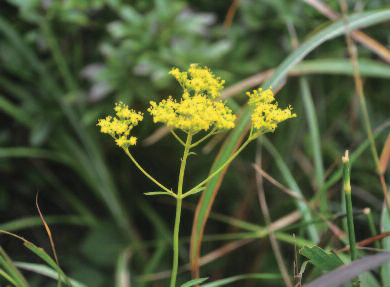특징: 여러해살이풀, 수염뿌리는 가늘고 줄기는 1~2대가 곧게 선다. 아랫부분에 몇개의 줄기집모양 잎이 있다. 잎은 줄기에 6~8개가 어긋나게 붙고 잎몸은 넓은 버들잎 모양으로 밑부분은 점점 좁아져서 줄기를 약간 감싸며 끝은 점점 뾰족해진다. 이삭꽃차례를 이루고 7~12개의 황색꽃이 핀다.