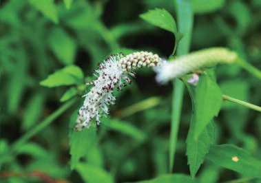 꽃은 위에서부터 피고 흰꽃이며 꽃 이삭은 원줄기 끝과 가지 끝에 달려 곧게 서거나 끝이 약간 처진다. 식용, 약용.