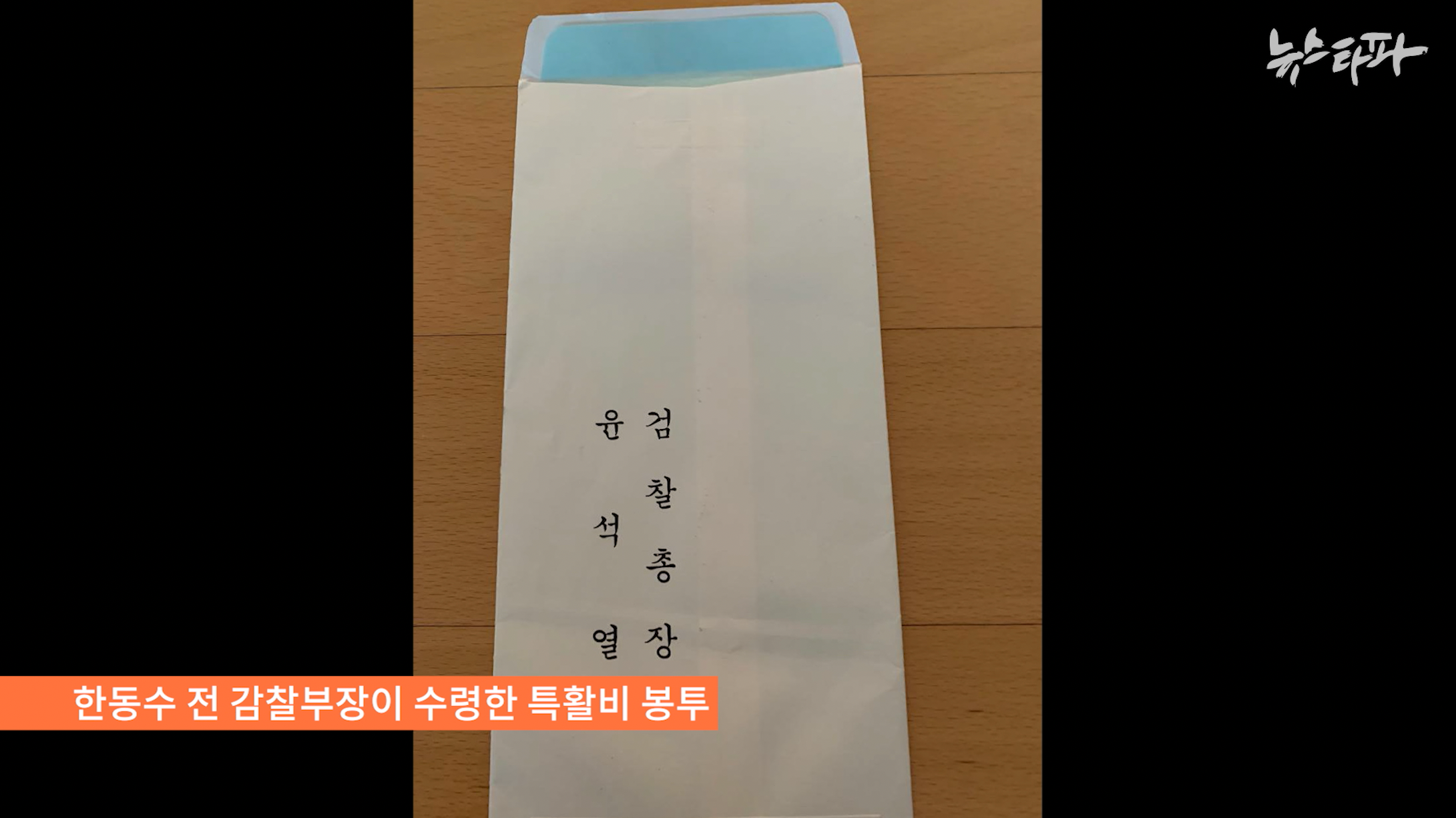 ▲ 한동수 전 대검 감찰부장이 재직 시절 윤석열 검찰총장으로부터 지급 받았다는 특활비 봉투. 지급자로 '검찰총장 윤석열'이라고 써 있다.