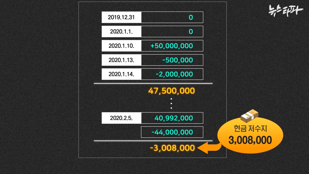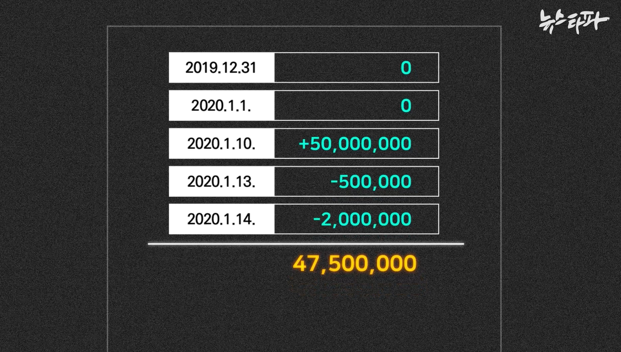 ▲ 2020년 1월 14일 기준, 윤석열 현금 저수지의 잔액은 4,750만 원이다.