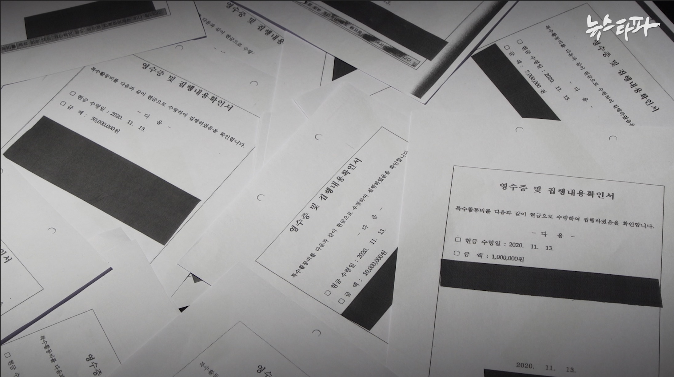 ▲ 윤석열 검찰총장이 2020년 11월 13일 '검찰총장 몫' 특수활동비를 집행하고 증빙한 '영수증 및 집행내용확인서'.