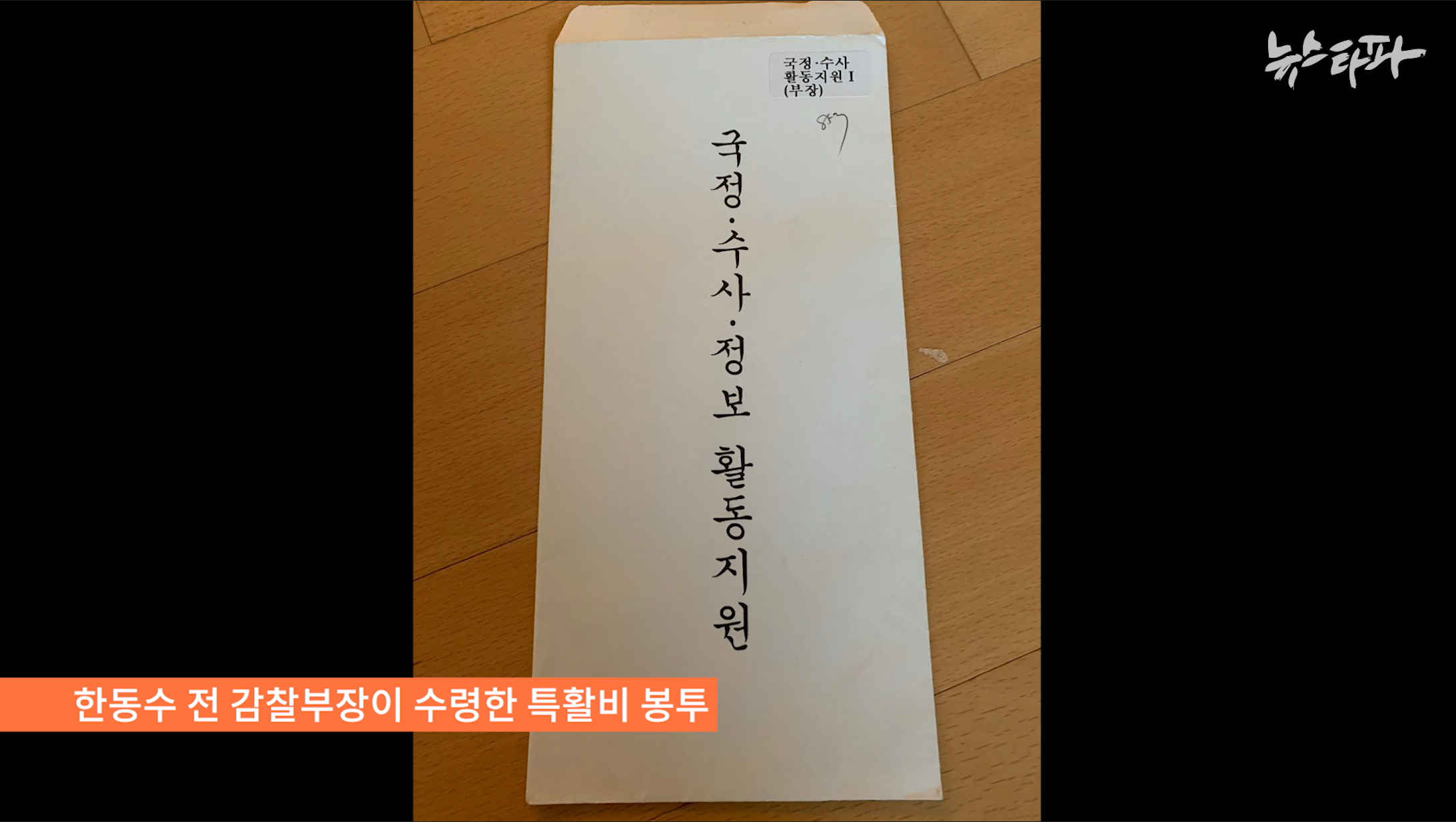 ▲ 한동수 전 대검 감찰부장이 받은 검찰 특수활동비 봉투. 겉면에 '국정 수사 정보 활동지원'이라고 써 있다.