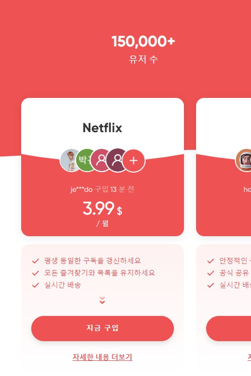가족이나 지인 공유가 아닌, 공유플랫폼을 통하여 모르는 사람과 전혀 새로운 아이디를 공유하여 사용하는 것이다.