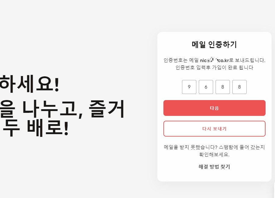 이메일 등록 후 메일로 발송된 인증번호를 입력 후 접속.