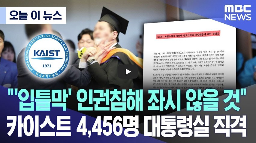 이슈정보금융 "'입틀막' 인권침해 좌시 않을 것" 카이스트 4,456명 대통령실 직격 by Jigton GAL 2024. 2. 20. 반응형 [오늘 이 뉴스] "'입틀막' 인권침해 좌시 않을 것" 카이스트 4,456명 대통령실 직격 (2024.02.20/MBC뉴스) 반응형 공유하기 게시글 관리 COTUBE 세상의이슈 저작자표시 비영리 변경금지 (새창열림) '이슈정보금융' 카테고리의 다른 글 [오늘 이 뉴스] "절대로 해선 안 될 행동이었다" 런던 찾아 사과..손흥민도 화답 (2024.02.21/MBC뉴스) 이강인 사과 | 손흥민에 쏟아지는 찬사…"꼭 부탁한다" 이 말 빛났다|뉴스들어가혁 (0) 2024.02.21 해운대 횟집 회식비 원고가 요구하는 ‘자료 일체’를 공개하라는 판결, 대통령실 완패. 지출증빙서류 공개 판결 - 업추비, 특활비 (0) 2024.02.20 넷플릭스 할인, 유튜브, 디즈니 싸게 저렴하게 보는 방법. Gamsgo "How to watch NETPLIX, YouTube Premium, Disney+ cheaply" (0) 2024.02.19 대통령 축사 중 끌려나간 카이스트 졸업생의 외침 "R&D 예산 복원하라" 카이스트(KAIST) 학위수여식 (0) 2024.02.16 "클린스만 경질" 고개숙인 정몽규 "위약금은 제가 회장으로서.." 지도력과 리더쉽 못 보여줘. 사령탑 교체. - 손흥민, 이강인 사태 (0) 2024.02.16 관련글 [오늘 이 뉴스] "절대로 해선 안 될 행동이었다" 런던 찾아 사과..손흥민도 화답 (2024.02.21/MBC뉴스) 이강인 사과 | 손흥민에 쏟아지는 찬사…"꼭 부탁한다" 이 말 빛났다|뉴스들어가혁 해운대 횟집 회식비 원고가 요구하는 ‘자료 일체’를 공개하라는 판결, 대통령실 완패. 지출증빙서류 공개 판결 - 업추비, 특활비 넷플릭스 할인, 유튜브, 디즈니 싸게 저렴하게 보는 방법. Gamsgo "How to watch NETPLIX, YouTube Premium, Disney+ cheaply" 대통령 축사 중 끌려나간 카이스트 졸업생의 외침 "R&D 예산 복원하라" 카이스트(KAIST) 학위수여식 댓글