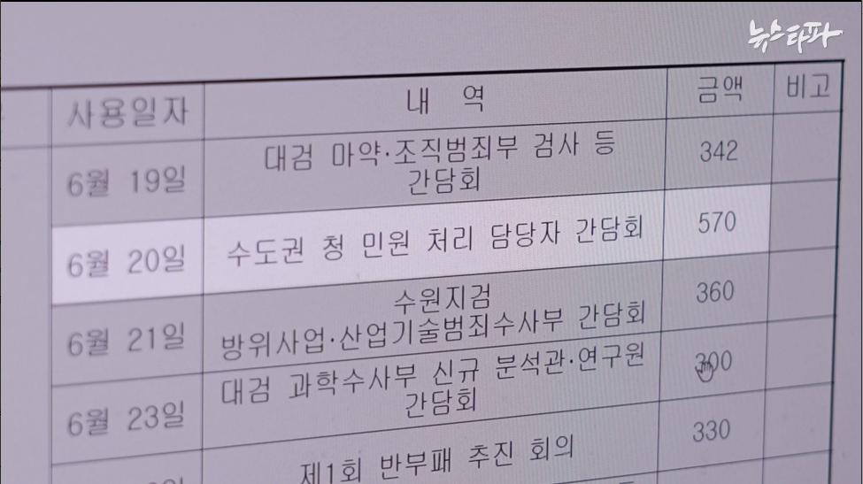 최영주 전 실장은 이렇게 민원실에 배당한 30만 원으로 민원 직원 여섯 명과 함께 5만 원짜리 회식을 했다고 말했다. 그는 수사 부서가 아닌 민원실에 내려주는 특활비는 결국, ‘회식 용도’로 쓰일 수밖에 없다고 말했다.