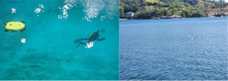 (좌) 안전 지원 로봇의 다이버 모니터링 기술 (우) 자율제어 기술 ⓒ한국로봇융합연구원 해양레저장비사업단