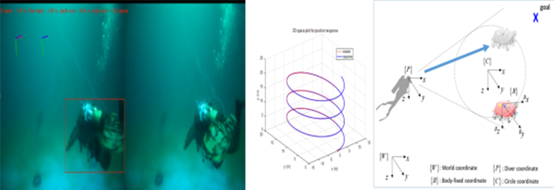 (좌) 안전 지원 로봇의 다이버 모니터링 기술 (우) 자율제어 기술 ⓒ한국로봇융합연구원 해양레저장비사업단