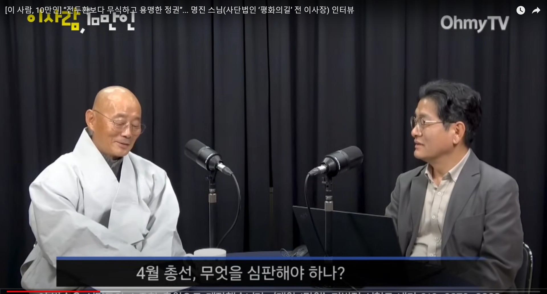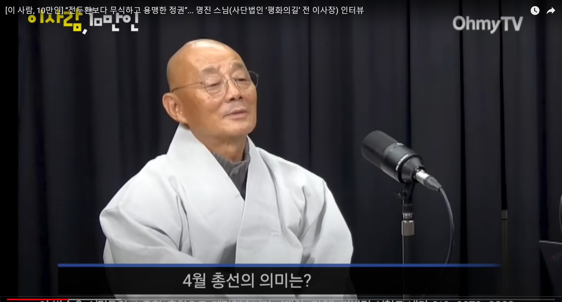 [이 사람, 10만인] “전두환보다 무식하고 용맹한 정권”... 명진 스님(사단법인 ‘평화의길’ 전 이사장) 인터뷰. 조폭두목 윤석열, 총선서 심판 죽비소리.