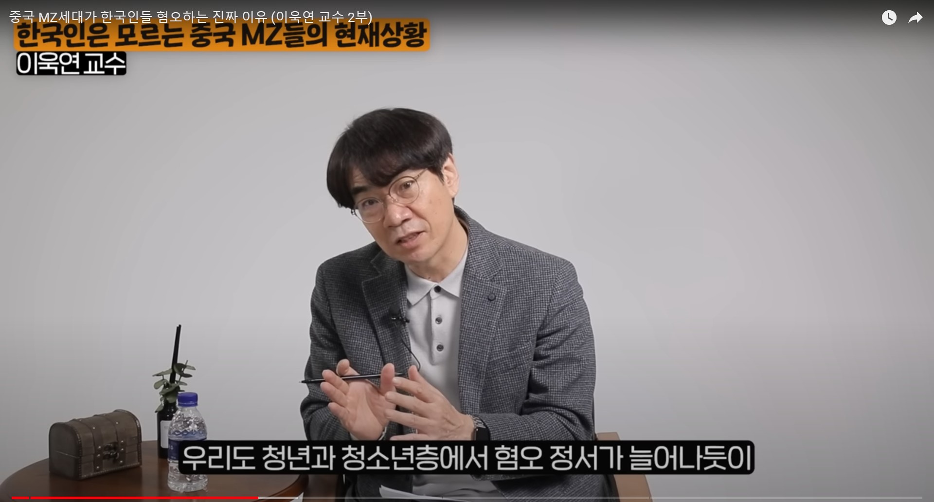 우리도 청년과 청소년층에서 혐오정서가 늘어나듯이 중국 청년들도 마찬가지.