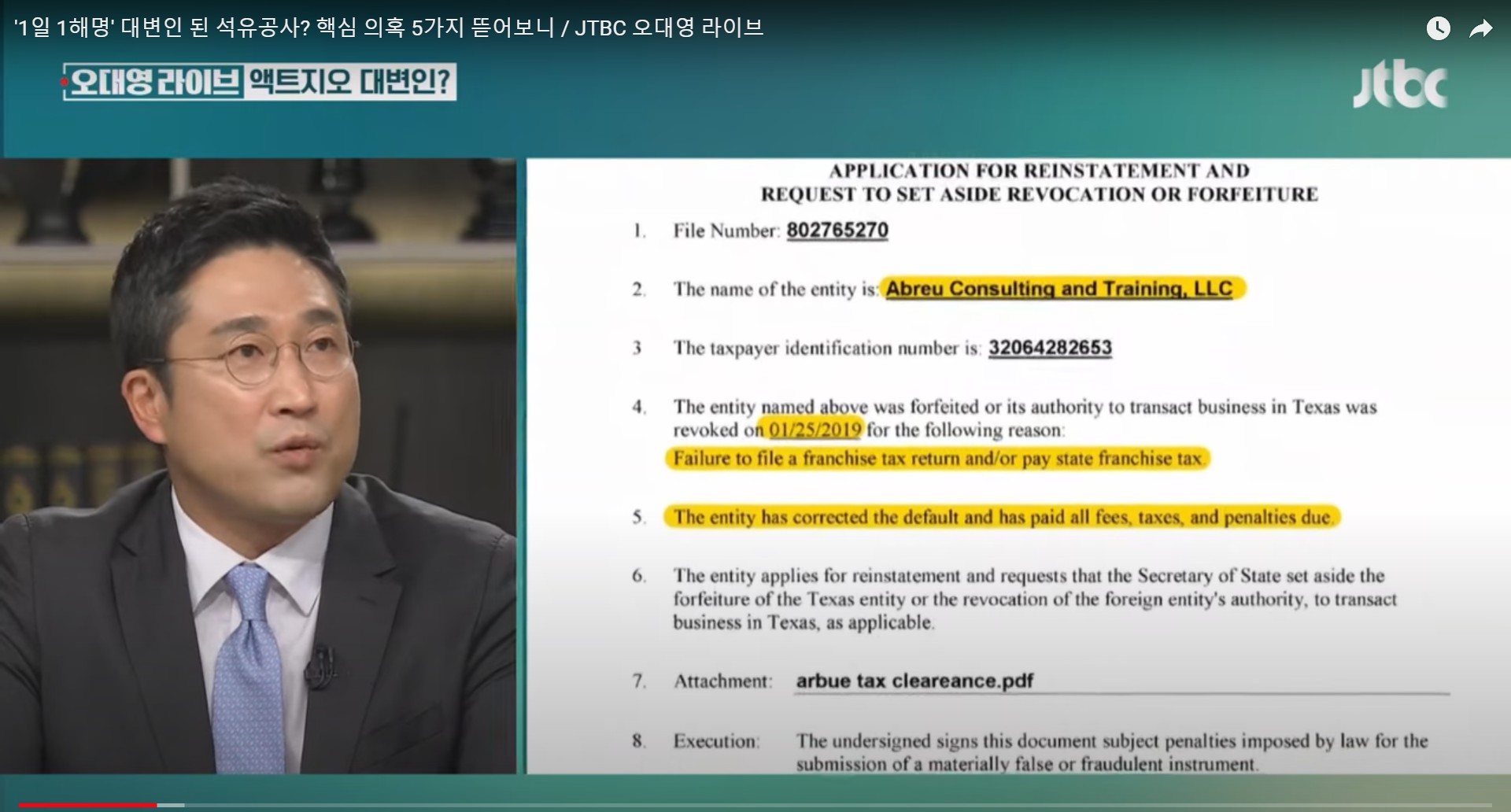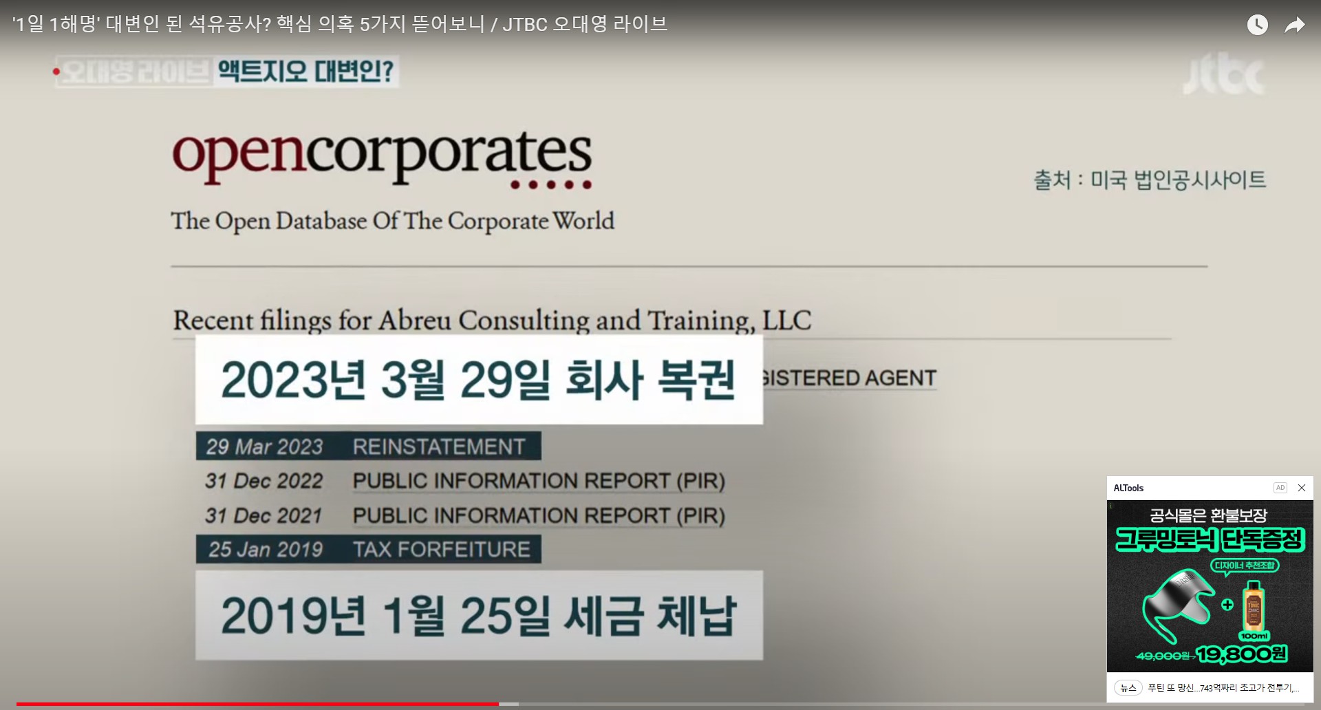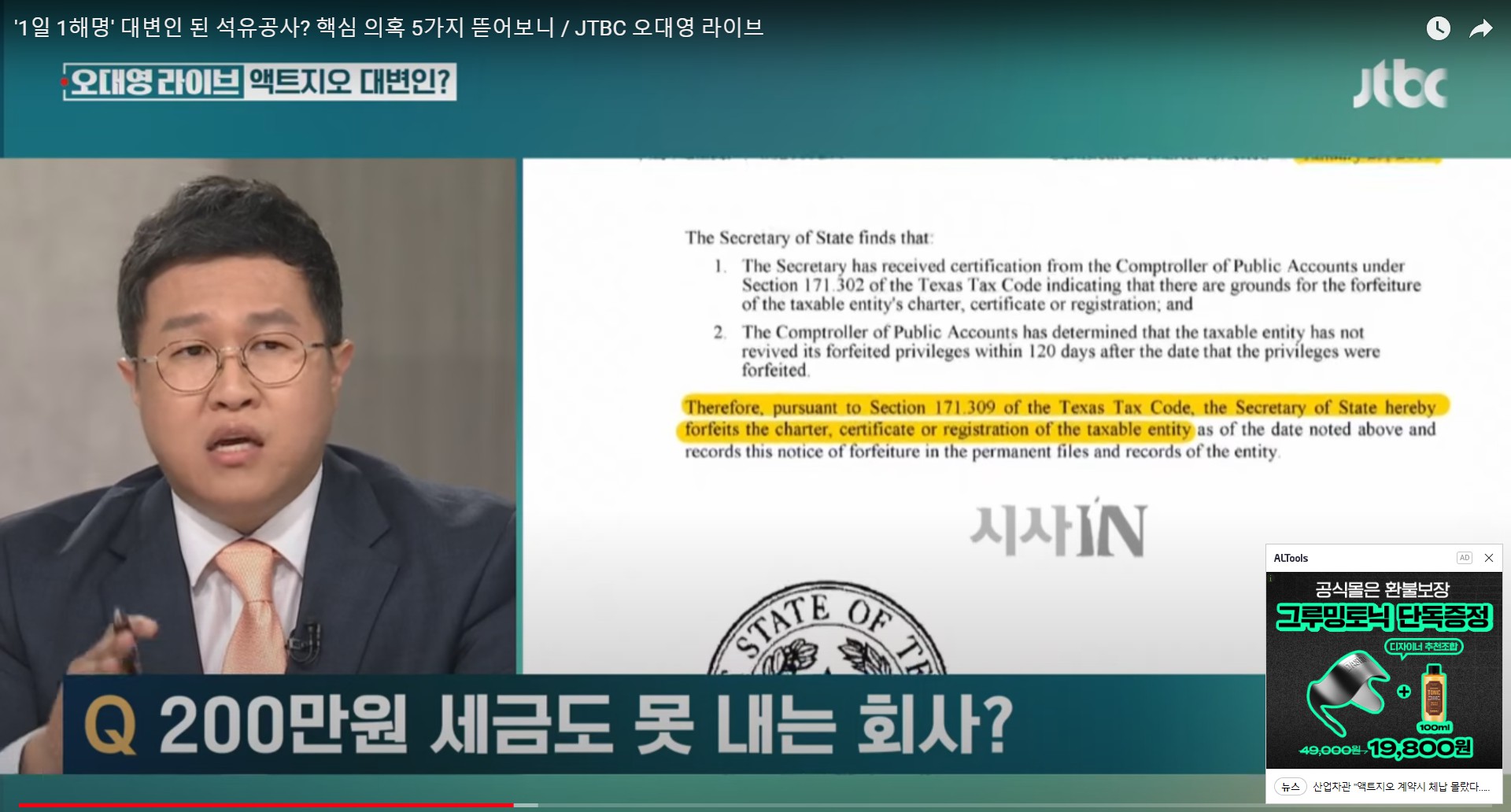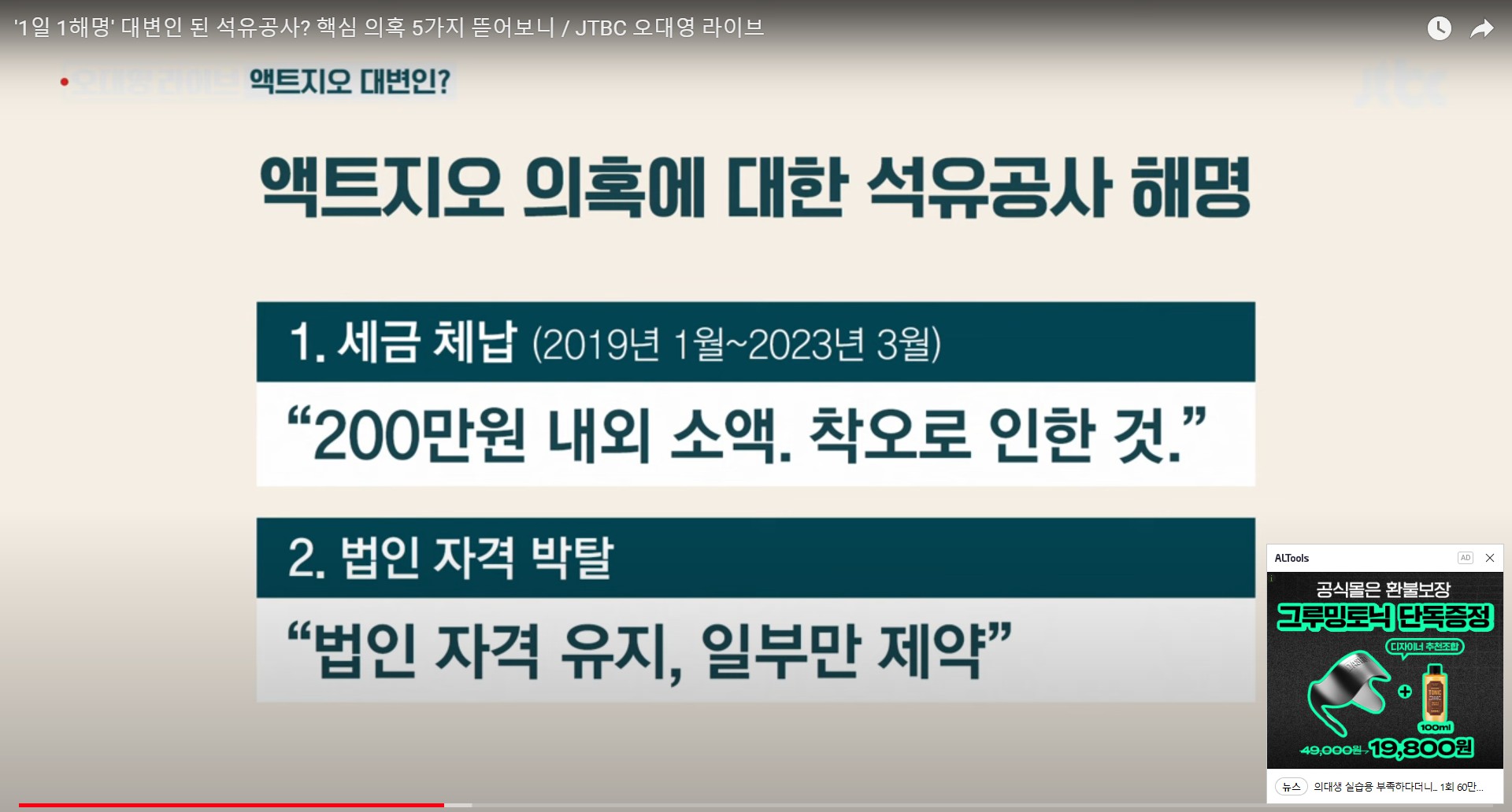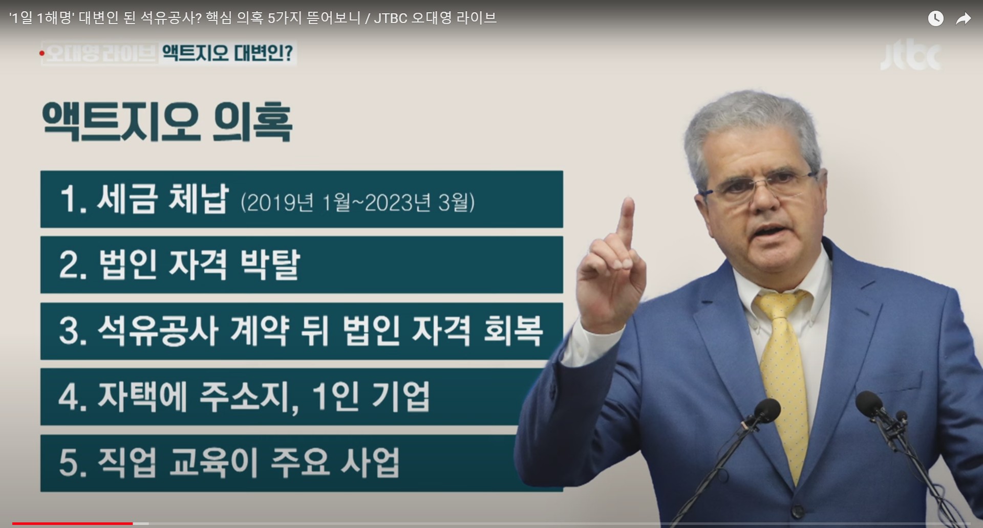 이슈정보금융 '1일 1해명' 대변인 된 석유공사? 핵심 의혹 5가지 뜯어보니. 액트지오 의혹 해명, 4년간 세금체납 200만원, 연간매출 3천만원 기 by Jigton GAL 2024. 6. 10. 반응형 '1일 1해명' 대변인 된 석유공사? 핵심 의혹 5가지 뜯어보니 액트지오 의혹 >> 1. 세금 체납 2. 법인 자격 박탈 3. 석유공사 계약 뒤 법인 자격 회복 4. 자택에 주소지, 1인 기업 5. 직업 교육이 주요 사업 반응형 공유하기 게시글 관리 COTUBE 세상의이슈 저작자표시 비영리 변경금지 (새창열림) '이슈정보금융' 카테고리의 다른 글 김건희 명품백 권익위 종결 결정, 배우자 제재 규정 없음. 뇌물의 신세계, 뇌물은 배우자에게 주면 된다. 정승윤 권익위 부위원장 윤석열 친구. (0) 2024.06.13 [증인매수 의혹]① 쌍방울, 대북송금 핵심 증인 '금품 매수' 정황 포착. ② 쌍방울 임원 "윗선 지시로 안부수 딸에게 주택 제공" - 뉴스타파 (0) 2024.06.12 [뉴스타파] 국정원 문건 ① 비밀보고서에 "쌍방울, 대북사업 내세워 주가조작" 정황 ② 쌍방울, 北 정찰총국 이호남과 '주가 조작' 공모 정황 ③ 블랙요원 법정 증언 "쌍방울 주가조작, 다른 요원이 먼저 포착" (1) 2024.05.23 6차 산업과 서호주의 지속가능어업(1) - 수산업 이야기, 락랍스터, 전복어업, 거버넌스 관리 | 못 생긴 게 어때서! 못난이 수산물 비즈니스 - 일본 피슬레, 밀키트 (1) 2024.05.16 [오늘 이 뉴스] "아무것도 안 받으면 아무 일도 안 일어나" 최재영 작심발언 (0) 2024.05.13 관련글 김건희 명품백 권익위 종결 결정, 배우자 제재 규정 없음. 뇌물의 신세계, 뇌물은 배우자에게 주면 된다. 정승윤 권익위 부위원장 윤석열 친구. [증인매수 의혹]① 쌍방울, 대북송금 핵심 증인 '금품 매수' 정황 포착. ② 쌍방울 임원 "윗선 지시로 안부수 딸에게 주택 제공" - 뉴스타파 [뉴스타파] 국정원 문건 ① 비밀보고서에 "쌍방울, 대북사업 내세워 주가조작" 정황 ② 쌍방울, 北 정찰총국 이호남과 '주가 조작' 공모 정황 ③ 블랙요원 법정 증언 "쌍방울 주가조작, 다른 요원이 먼저 포착" 6차 산업과 서호주의 지속가능어업(1) - 수산업 이야기, 락랍스터, 전복어업, 거버넌스 관리 | 못 생긴 게 어때서! 못난이 수산물 비즈니스 - 일본 피슬레, 밀키트 댓글