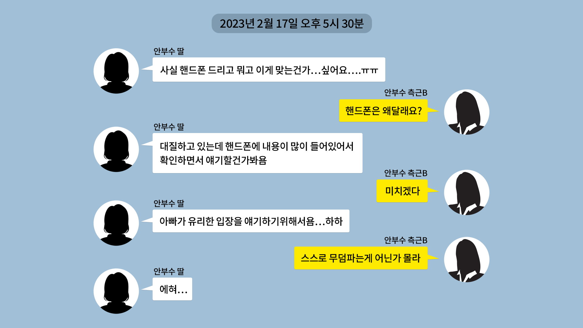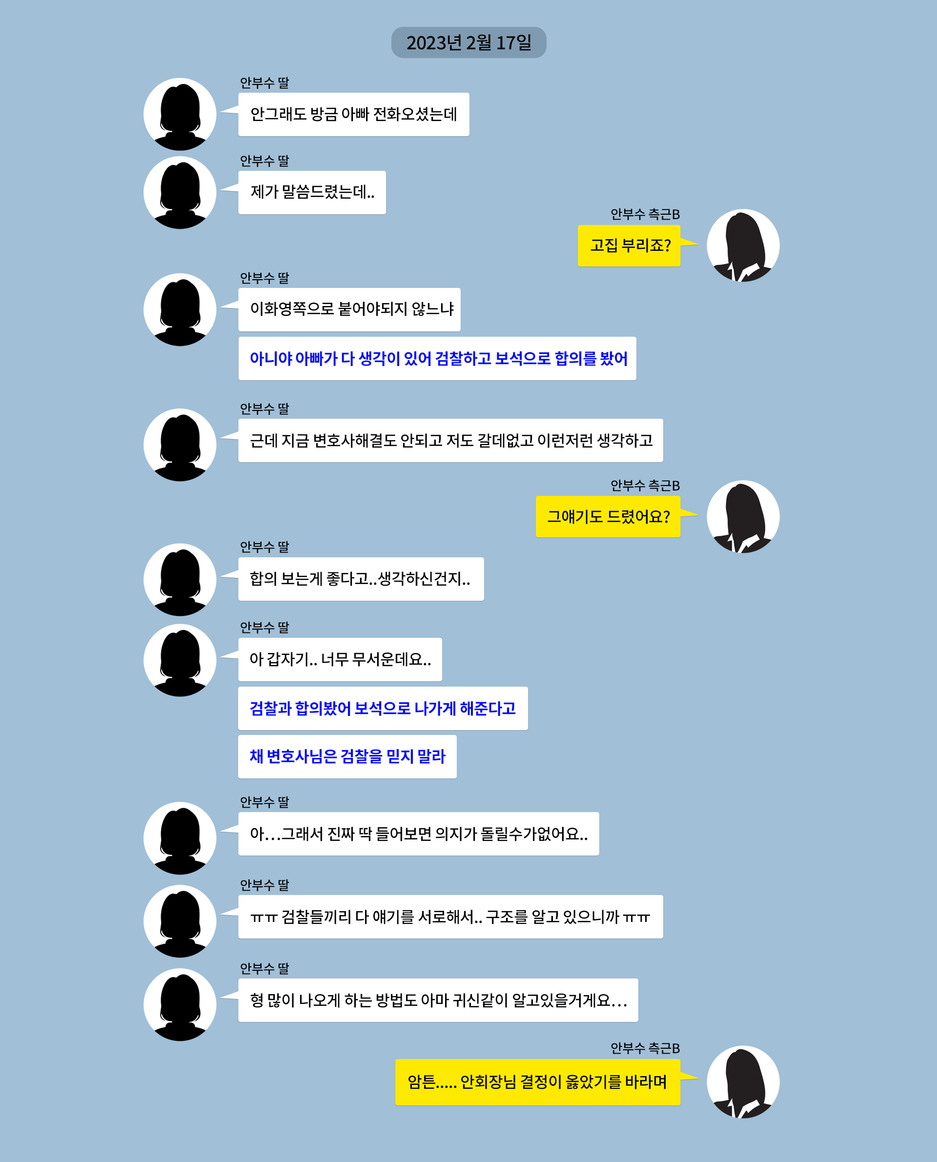 ③ 안부수, 딸에게 전화로 "검찰과 합의했다"(2023.2.17)