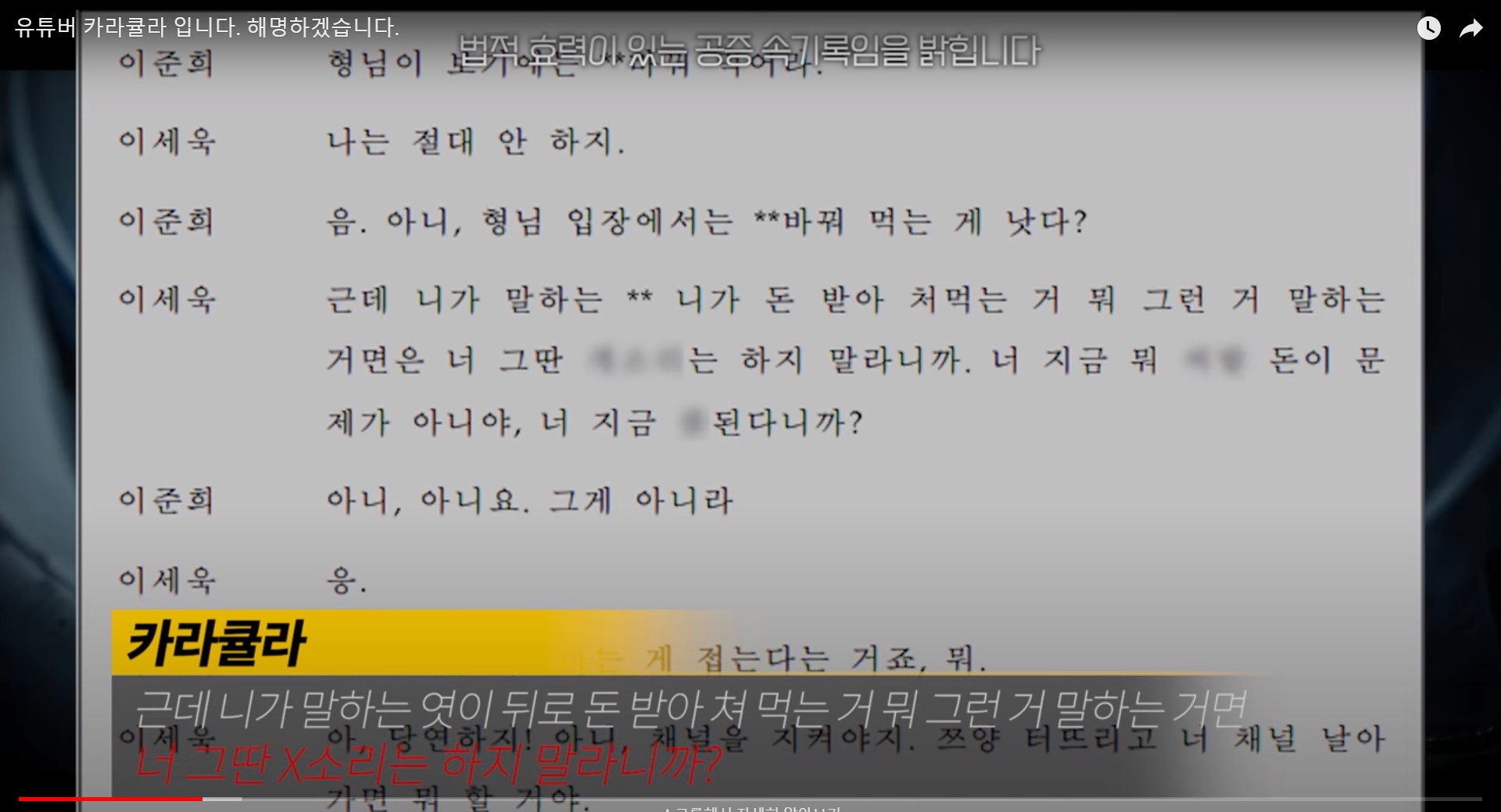 유튜버 카라큘라 입니다. 해명하겠습니다.