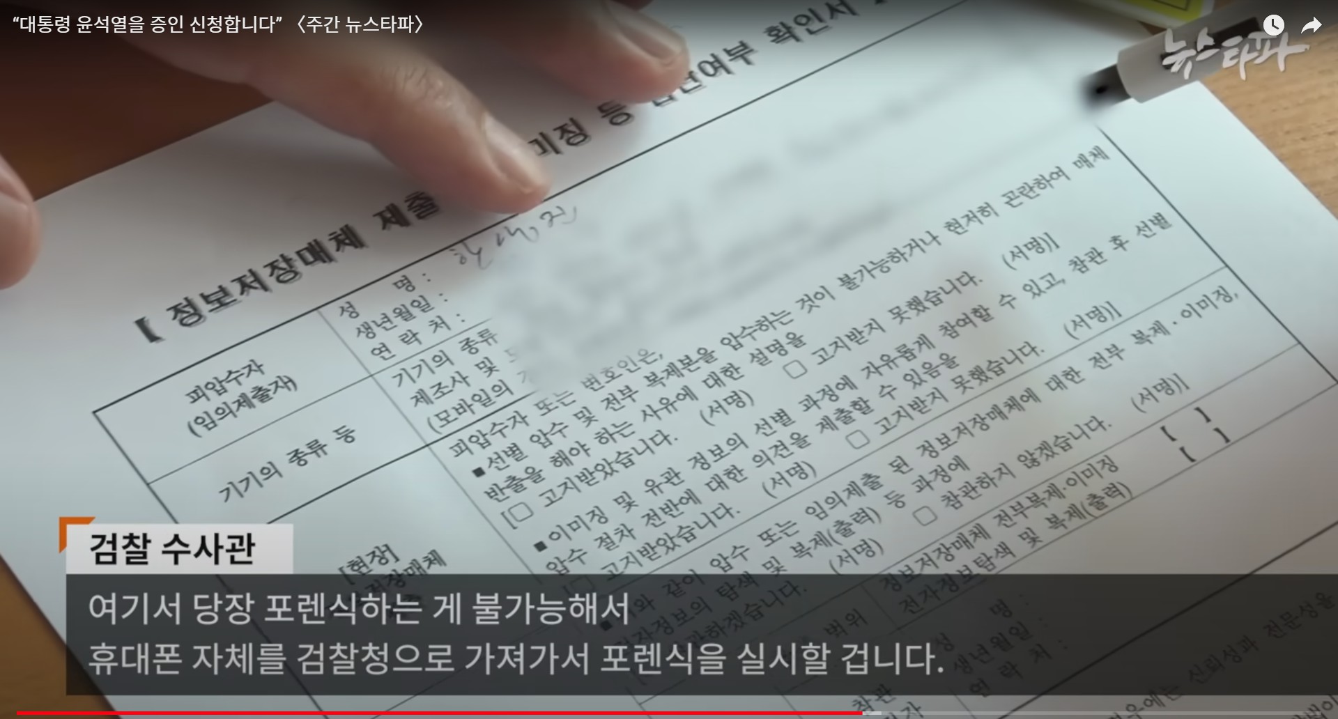 "필요한 데이터를 검색해서 가져가라 그러니까 '장비가 없다. 그걸 이제 가지러 가서 오면 여기까지 오면 시간이 오래 걸리고 실제 그 장비를 가지고 여기서 포렌식 하면 시간이 얼마나 걸릴지도 모른다. 1박 2일이 걸릴지도 모른다. 이러면서 휴대폰을 가져갔습니다."뉴스타파 김용진 대표