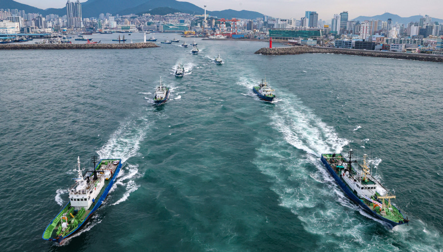 지난 7월 부산공동어시장에서 만선의 꿈을 품고 출항한 대형선망수협 배들.