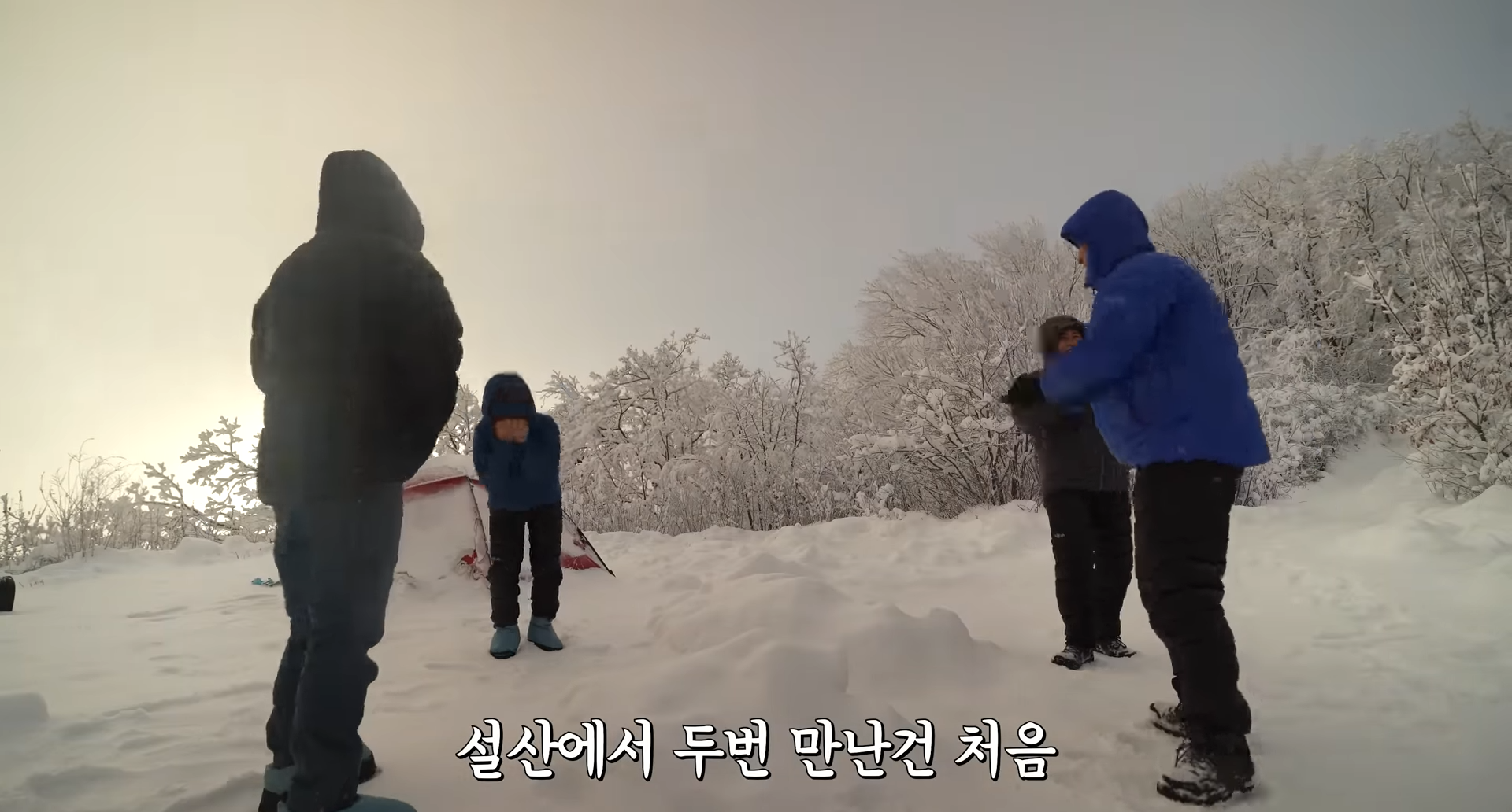 아름다운 설산 등산, 언덕길에 눈치우고 텐트 치고, '감동 모드' 인생 산중 캠핑, 설산등반, 설산등산, 눈위 비박, 동계캠핑