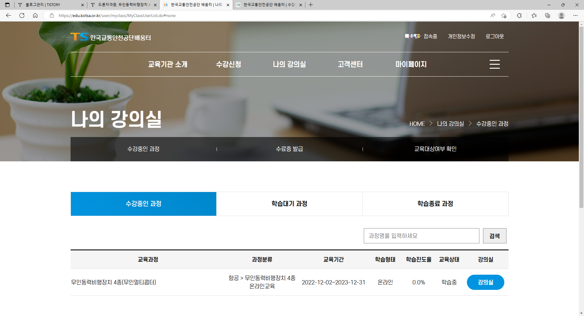 강의실 클릭을 하면 아래와 같이 과정이 나옵니다.