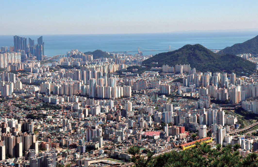 억새밭 동쪽 끝에서 보면 산자락에 안긴 범어사가 발아래고 멀리는 수영만까지 눈길이 닿는다.